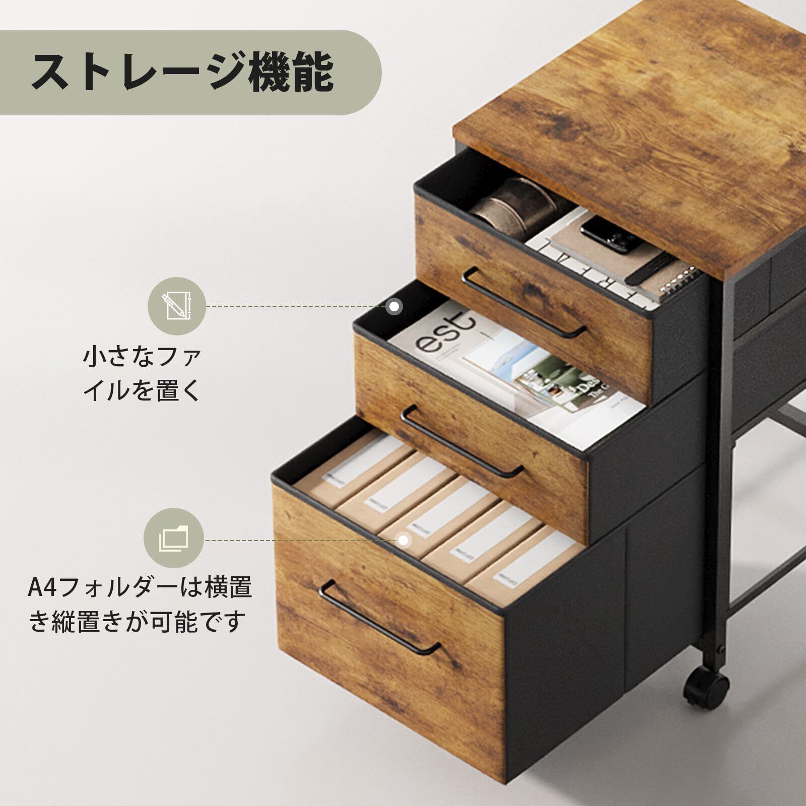 【3段収納】引き出しが3段付き、用途で使い分けられるので細かいファイル整理が可能です。1段目、2段目はA4ファイルが横向きでゆったり入るサイズで、浅めな設計なので文具などの小物も取り出し簡単です。3段目は深い引き出しになっていますので、A4フォルダーは横置き、縦置きが可能です。効率よく整理できる同時に、充分な作業スペースも保証します。