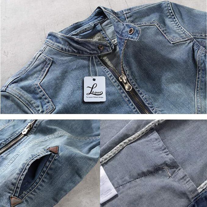 [Laquest] (ラクエスト) ヴィンテージ スタンドカラー デニム ライダース ジャケット