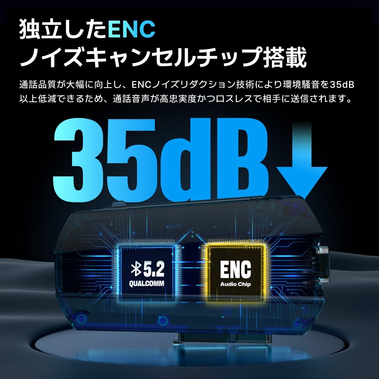 【初のENCトーキングノイズキャンセリングインカム】T4XはENCテクノロジーを搭載した市場で唯一のバイク インカム。 オリジナルのDSPとCVCノイズキャンセリングテクノロジーに、私たちは革新的にENCチップを追加した、通話中の音声品質を確保し、気が散る周囲のノイズを除去します。 ENCテクノロジーは、周囲の騒音を35デシベル以上低減することが証明されています、ライディング中、あなたと仲間のライダーがより自由にコミュニケーションできるようにする