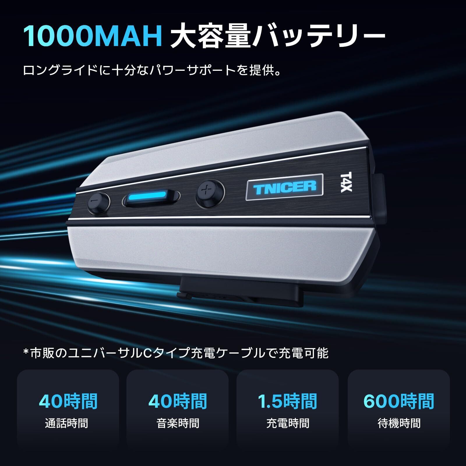 【新着商品】TNICER バイク インカム T4X ENCノイズキャンセルチップ搭載 Bluetooth5.2 インカムバイク用 8人同時通話 40時間連続使用 1000m 通信距離 3種類の音質調整 日本語音声ガイダンス 他ブランドのインカムと接続可能 音楽共有 防水規格IP67 付属品完備 日本語説明書付き TELEC技術基準適合証明付き (1) | ニコニコSHOP