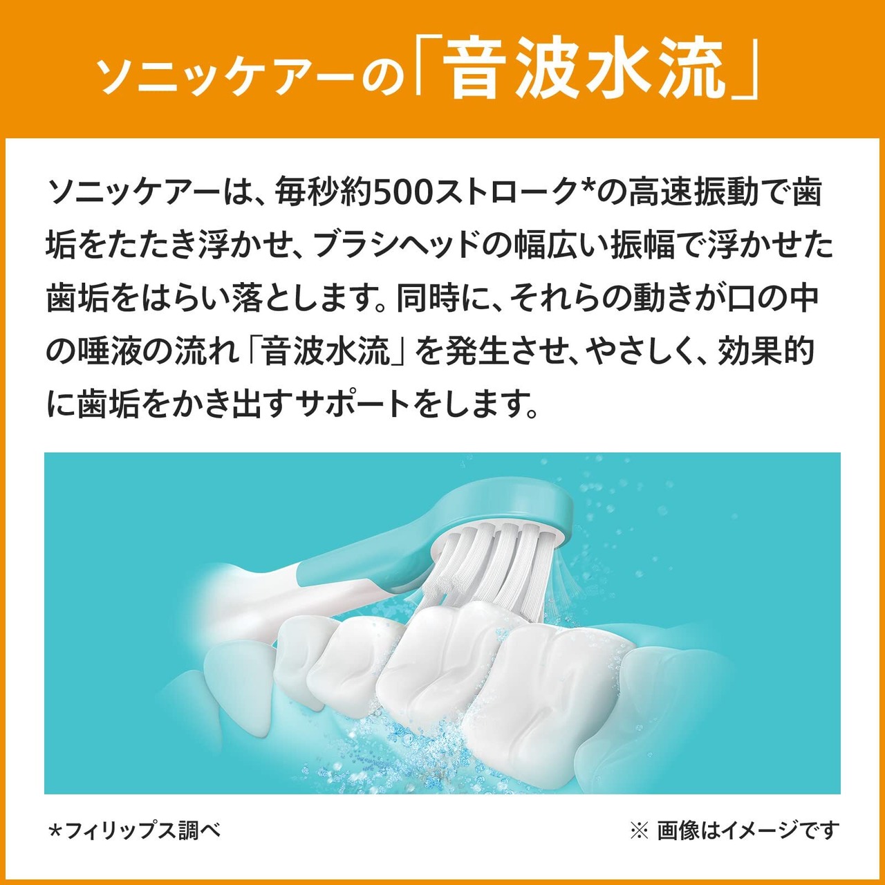 【音波テクノロジー】音波水流(口の中の唾液の流れ)の発生で、やさしく効果的に歯垢や汚れをかき出すサポートをします