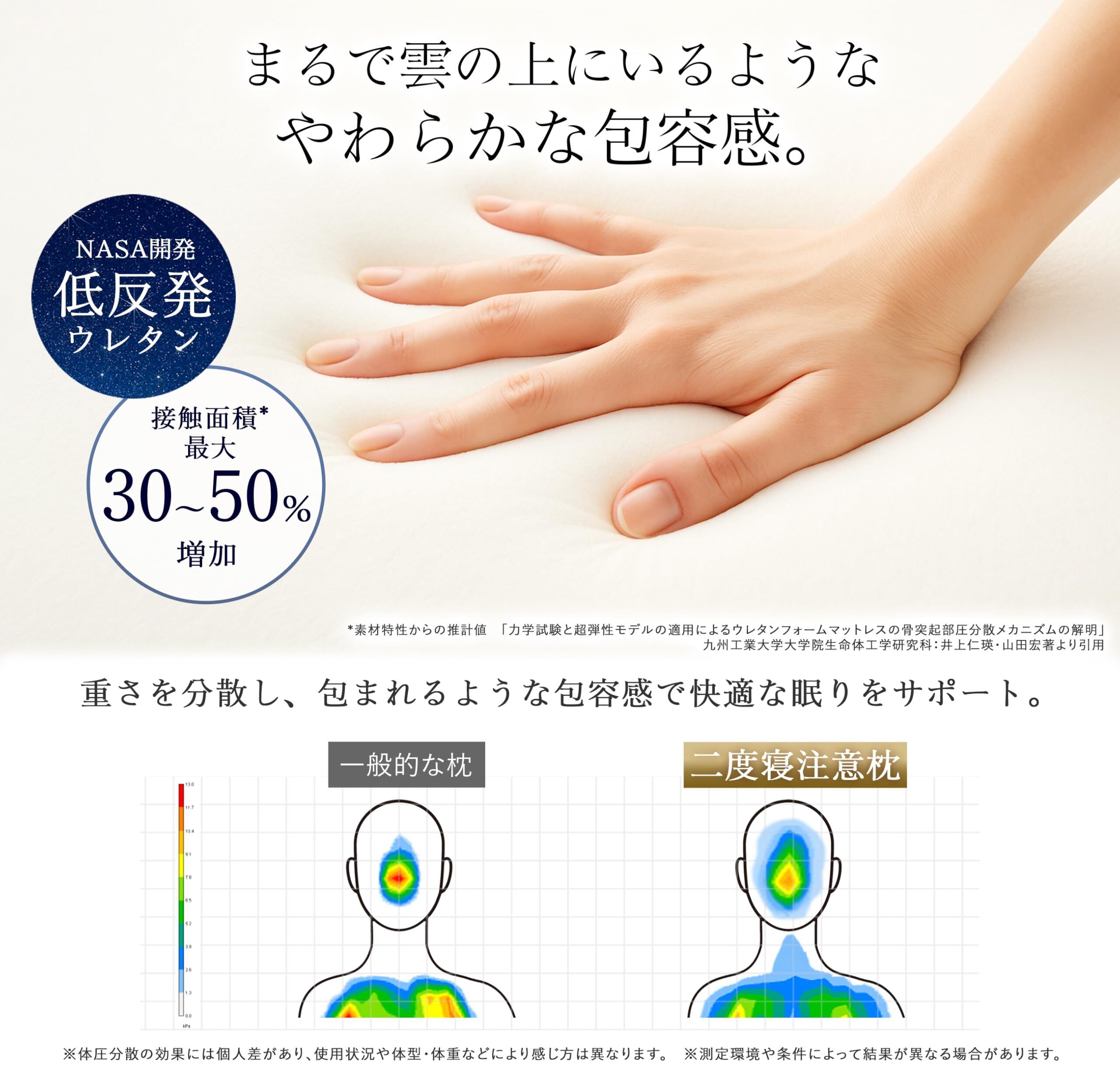 ご注意:枕の素材となる低反発フォームの特徴としてまれに気泡や筋のようなものが製造工程上できてしまうことがございます。 枕としての機能に影響がないこと・中の素材であり枕カバーをかけると見えないこと及びカバーを外してもさらにインナーカバーで覆うことで目立たなくしていること・これらすべてを除外すると生産コストが上がり販売価格が上がること等々、これらの理由から不良品ではないという扱いにさせていただいております。