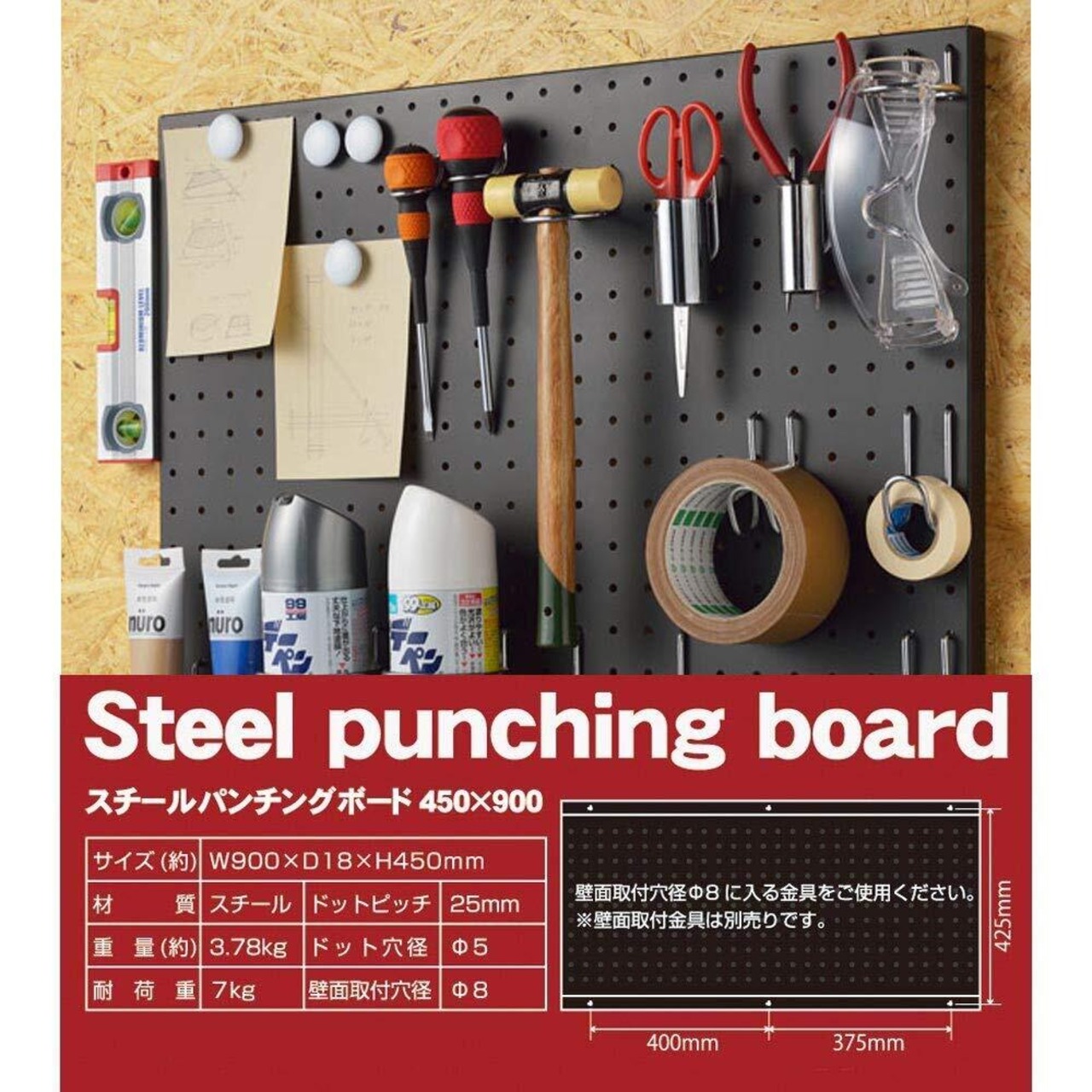 マグネット・磁石対応スチール製の有孔ボードです。