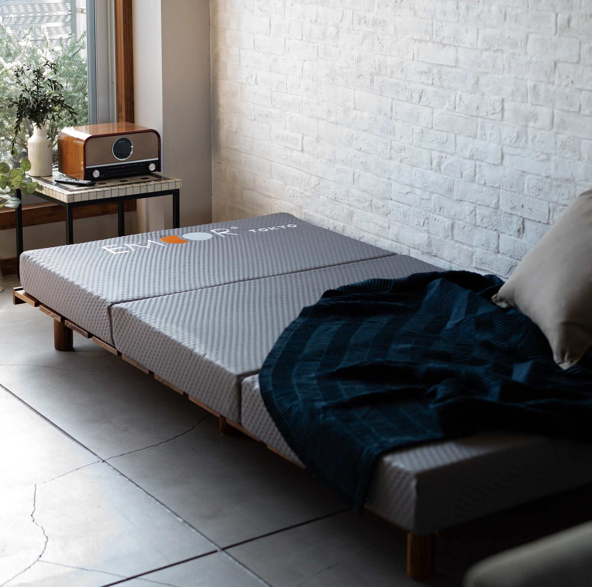 機能的なデザイン ・複数の繊維を使った膨れニット加工でリッチな寝心地 皮膚接触を抑える立体的な生地には、ピリング加工を施しました。 ・裏面には通気性のよいメッシュ素材を採用 就寝中に身体から放出される熱を効率的に吐き出す裏面メッシュ設計。 ・三つ折りで手軽に移動 布団のように使わないときは畳むことができます。来客用としても便利です。 ・外して洗えるカバー 付属カバーの上から、市販のBOXシーツやフィットシーツをつけて使うことも可能。 始まる、眠りの新世界。