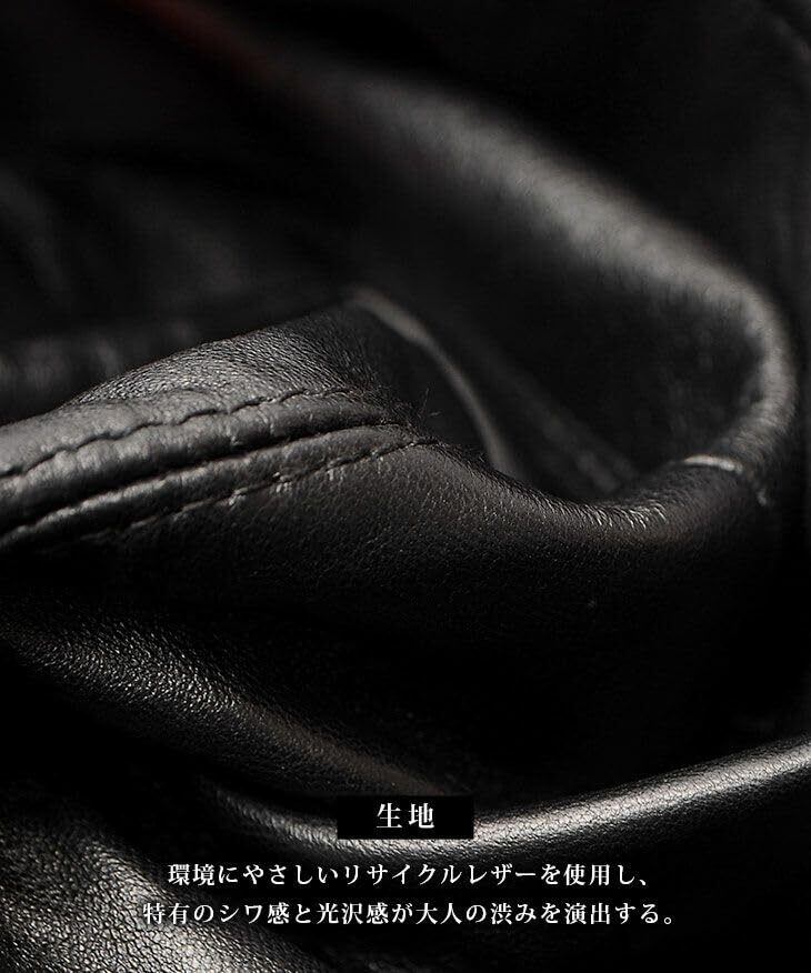 ※リサイクルの本革を使用しているため、革の種類は特定されておりません。また、商品は新品ですが材料は古着になりますので商品による質感の誤差やコンディション等には違いがありますのでご了承くださいませ。