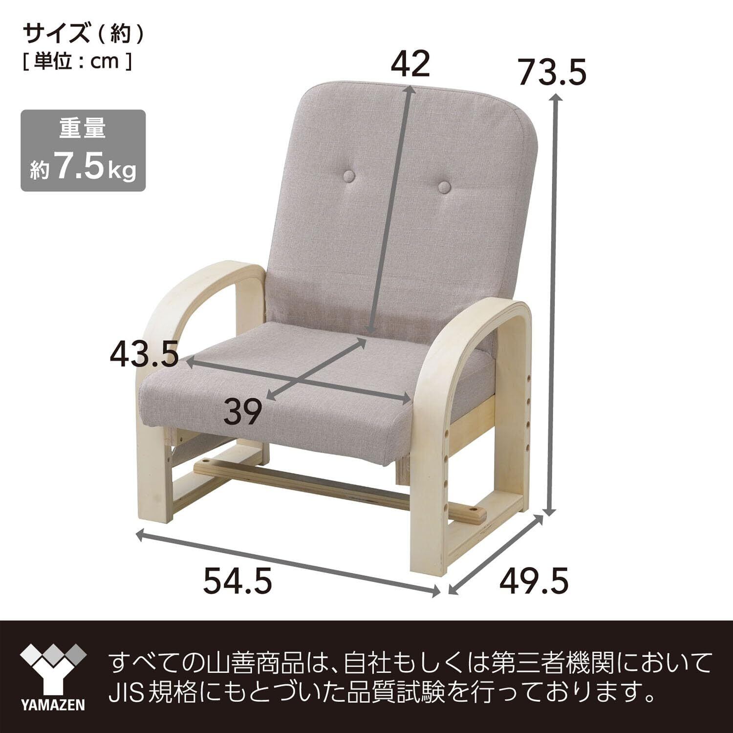 ●本体サイズ:幅54.5×奥行49.5×高さ65.5-73.5cm●座面高さ:24/28/32cm(3段階高さ調節)●座面サイズ:幅43.5×奥行39cm●座部の厚み:8cm●背もたれ高さ:42cm●リクライニング3段階●折りたたみ時サイズ:幅54.5×奥行47×高さ38.5cm●重さ:7.5kg●耐荷重:90kg●材質:積層合板(ウレタン樹脂塗装)、スチール、ウレタンフォーム●東証プライム(株)山善で扱うすべての山善商品は、自社もしくは第三者機関において、JIS規格に基づいた品質試験を行っております。
