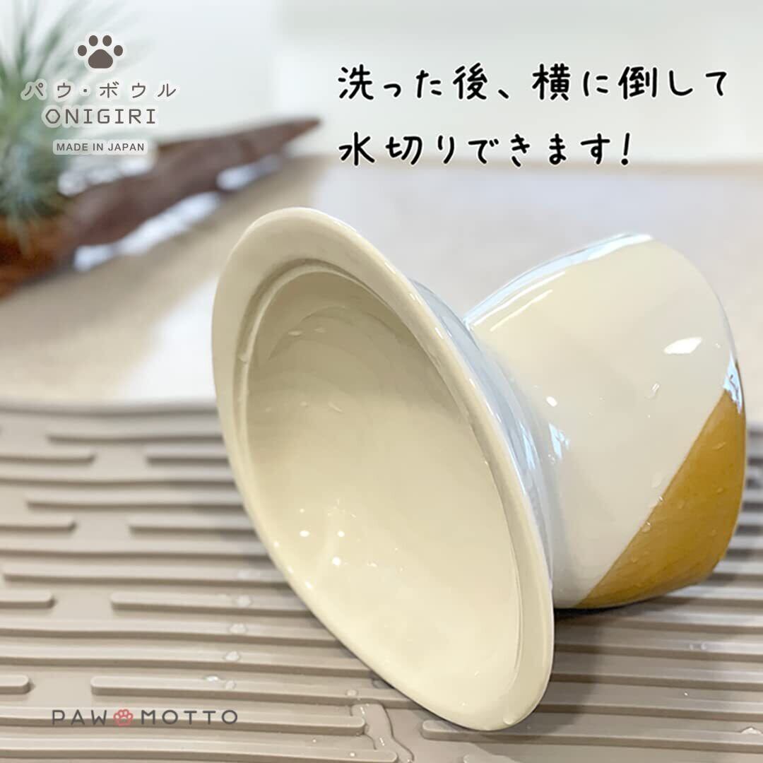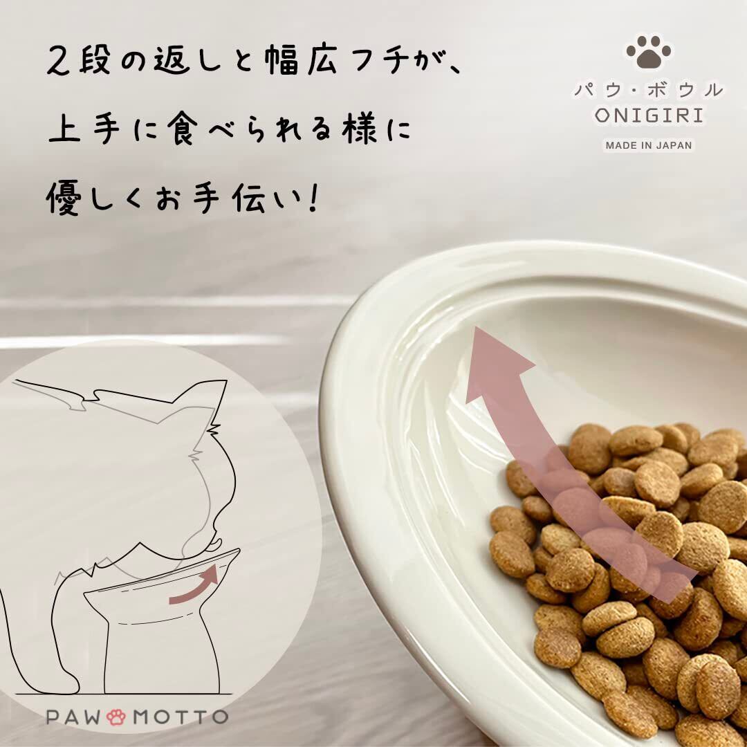 【在庫セール】日本製・陶磁器 PAW-MOTTO【パウ・ボウル ONIGIRI】パウモット 猫用 フードボウル 鼻ぺちゃ猫 食べこぼし猫 優しい器 お手入れ簡単 給餌 猫食器 瀬戸焼 (グレー) | ニコニコSHOP