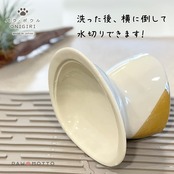 【お手入れしやすい形】お世話をする人の手にも馴染みやすい丸みのある形状。洗った後、横にしておいておけば、いつの間にか水切りできてスッキリ。オーナー様の忙しい毎日のちょっとした時短にも配慮したフードボウル。