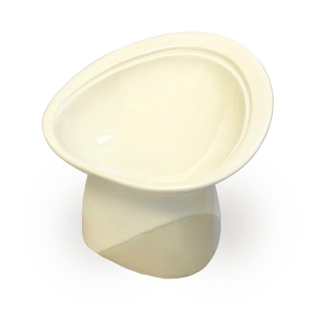 【鼻ぺちゃ、食べこぼし猫にも優しい】鼻ぺちゃ猫さんや、短足猫さん、深いお皿だと食べにくそうな猫さんでも「もっと食べやすい優しい器を」との思いで考案された猫用フードボウル。三角形の頂点が奥になるように置いて使用することで、周りの2段のフチが優しく食べこぼしをガードしてくれます。
