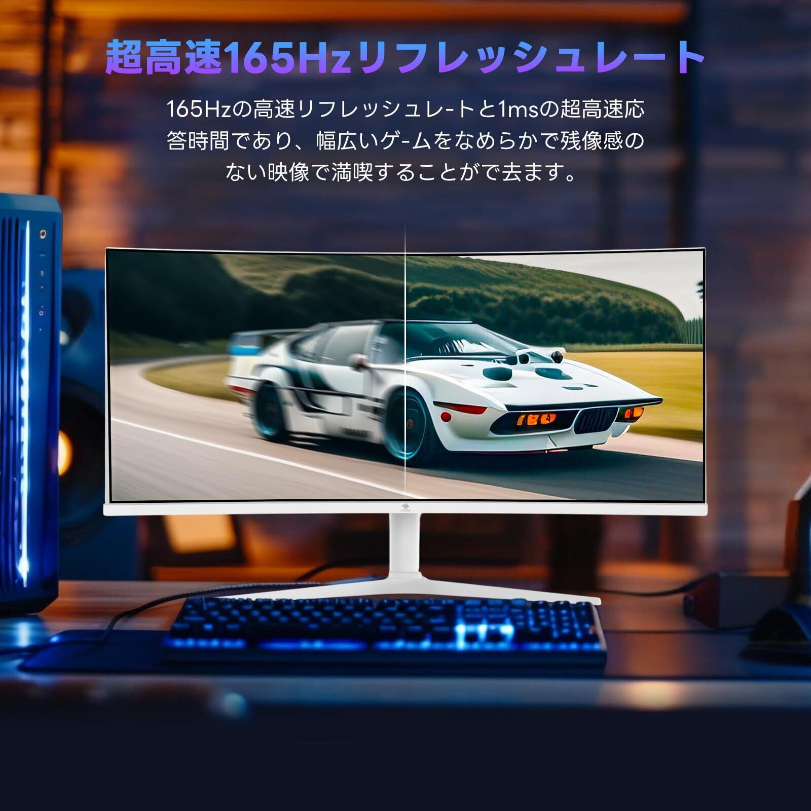Z Z-Edge(ゼロエッジ) 湾曲ゲーミングモニター 34型 WQHD(3440x1440) 165Hz IPS ウルトラワイド LGパネル採用 1500R曲面 1ms AMD FreeSync対応 HDR10 高さ調整/チルト機能 登録で国内2年保証 UG34I(ホワイト)