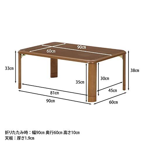 不二貿易 折りたたみテーブル ローテーブル 高さ調節可能 角が丸い 幅90×奥行60×高さ33~38cm ミディアムブラウン 10036