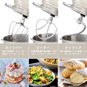 【多機能なアタッチメント&6つのスピードモード】Aucmaスタンドミキサーには、ホイッパー、ドゥフックとビーターの3つのアタッチメントが付属し、6段階のスピードモードで、さまざまな料理ニーズに対応でき、信頼できるキッチンパートナーです。