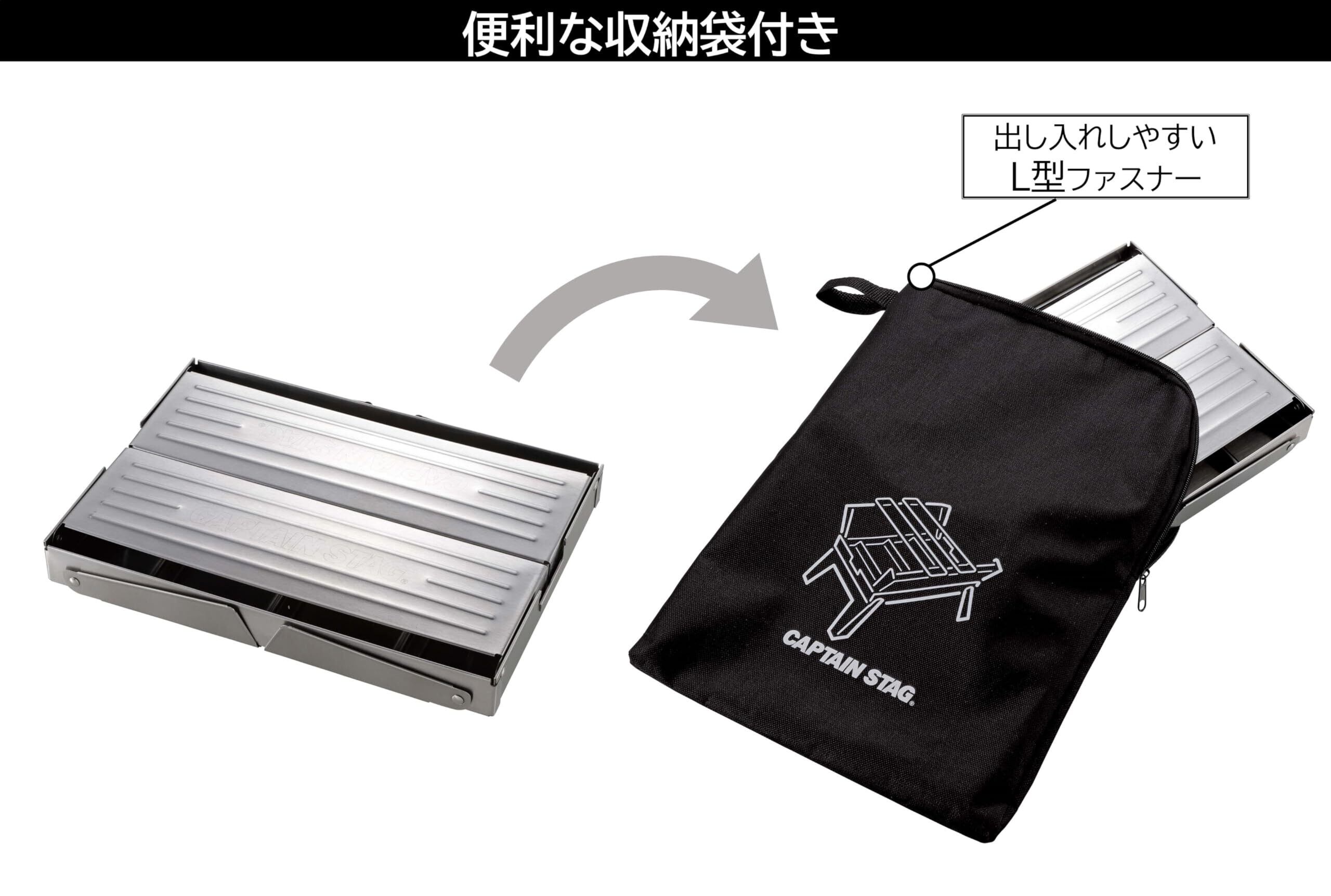 【特価商品】キャプテンスタッグ(CAPTAIN STAG) バーベキューコンロ 焚火台 ハコ グリル A4型 組立簡単 ゴトク付 収納バッグ付 ステンレス製 UG-110