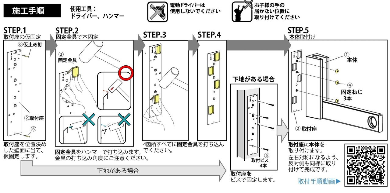 石こうボード壁に取り付け可能な物干しブラケットです。
