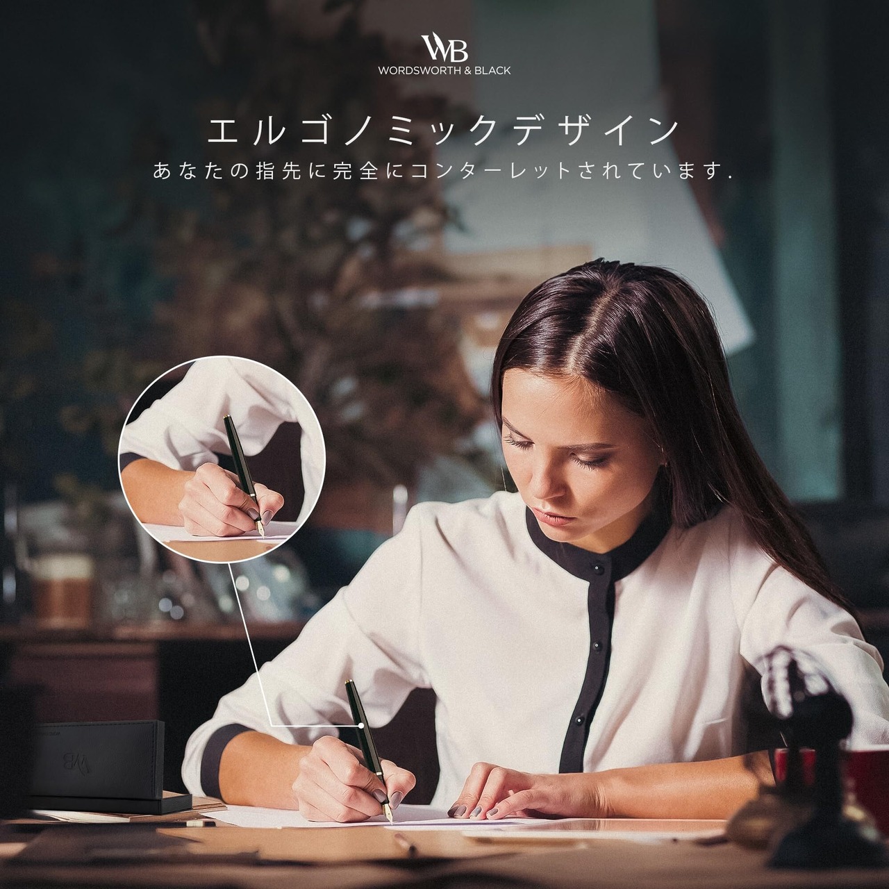 ワーズワース & ブラック 万年筆セット 中字 インクカートリッジ6本とインク詰め替えコンバーター付き ギフトケース ジャーナリング カリグラフィー 滑らかな書き心地のペン [インペリアルブルー] 男女兼用