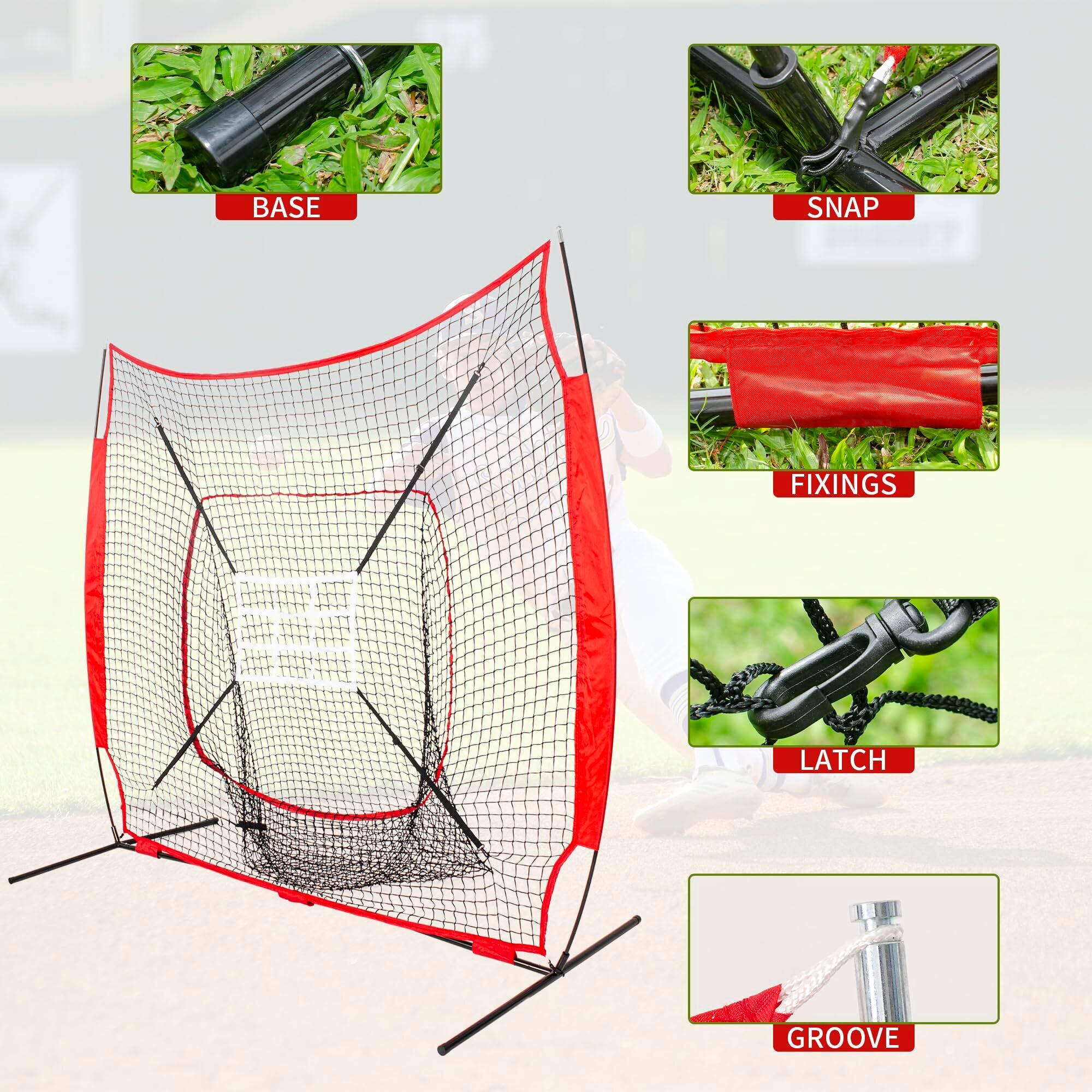 AKOZLIN 野球練習ネット 折り畳み式 野球ネット 213 × 213 cm 防球ネット バッティングネット ピッチングネット 打撃 投球練習 車庫 ボール受けネッ ト トレーニング 練習器具 組立簡単 硬式 軟式 スチール製 収納袋付き 日本語の取扱説明書つき