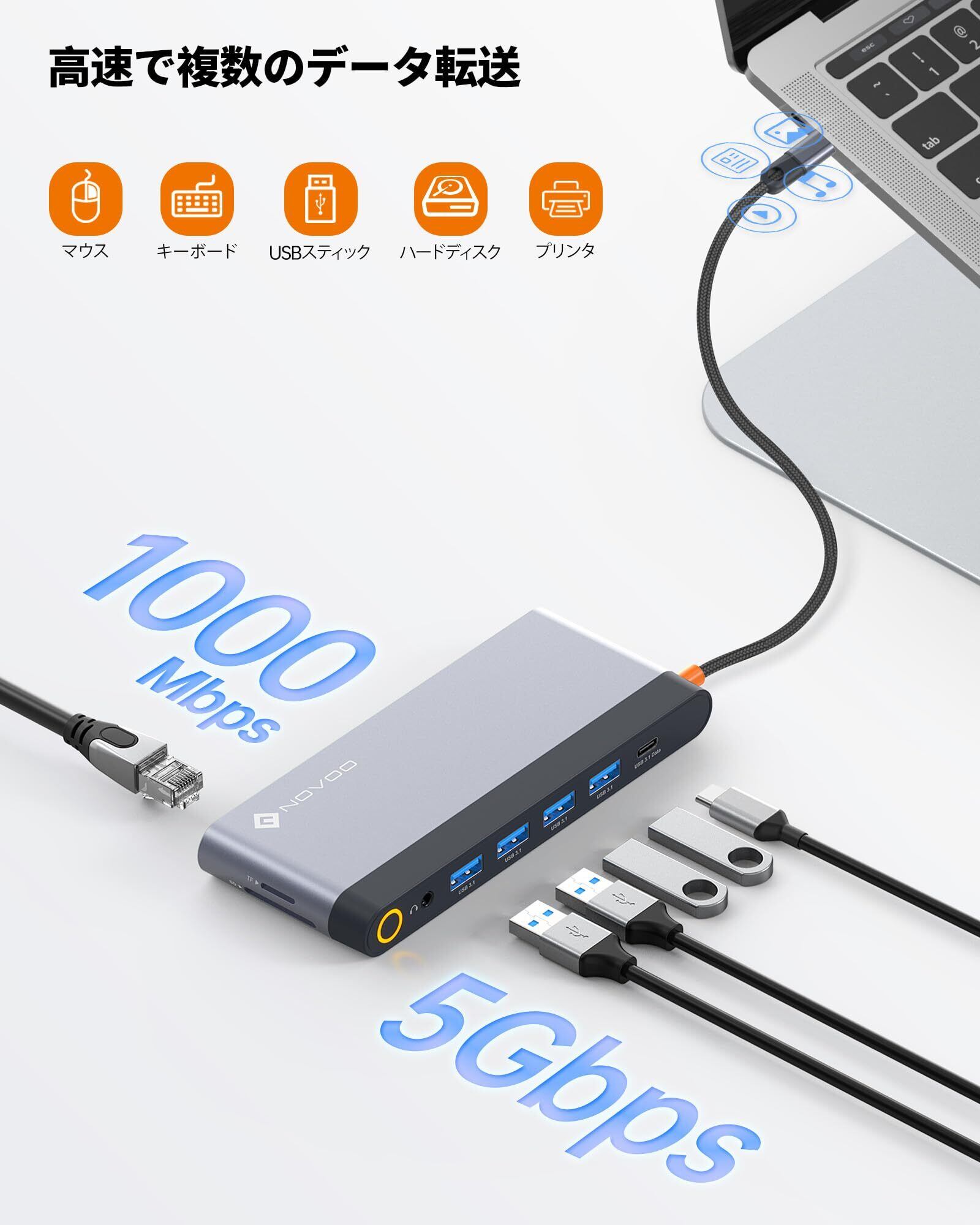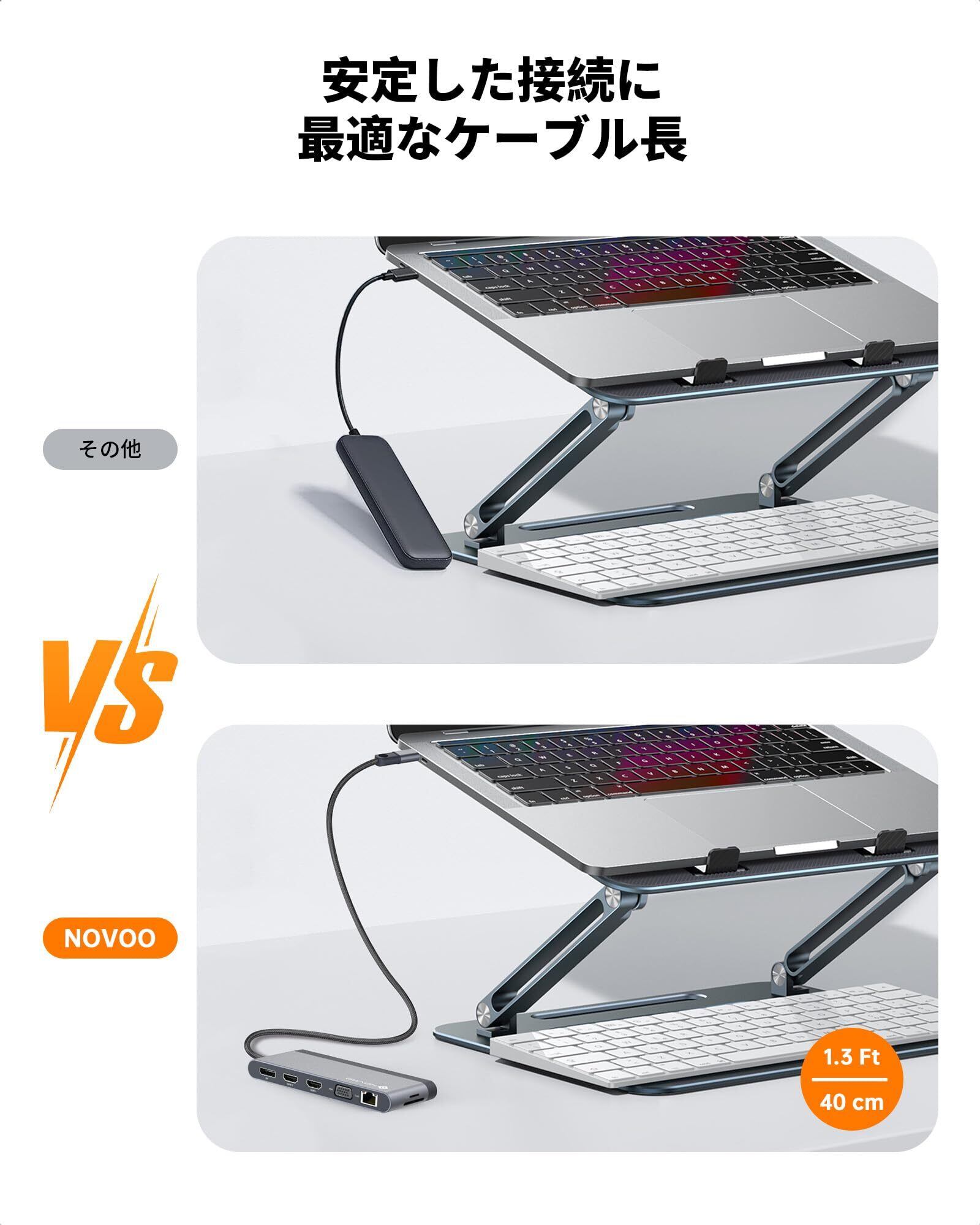 【人気商品】NOVOO 14-in-1 8K@30Hz 4画面モード デュアル 4K@60Hz 40cm延長ケーブル 収納型 USB C ドッキングステーション USB C HDMI ハブ【DP+2 HDMI+VGA+4 USB+USB C 5Gbps+PD 100W急速充電+SD+TF+RJ45+3.5mmオーディオ+マイク】 NEC/Dynabook/MacBook ProM1M2/iPhone 15
