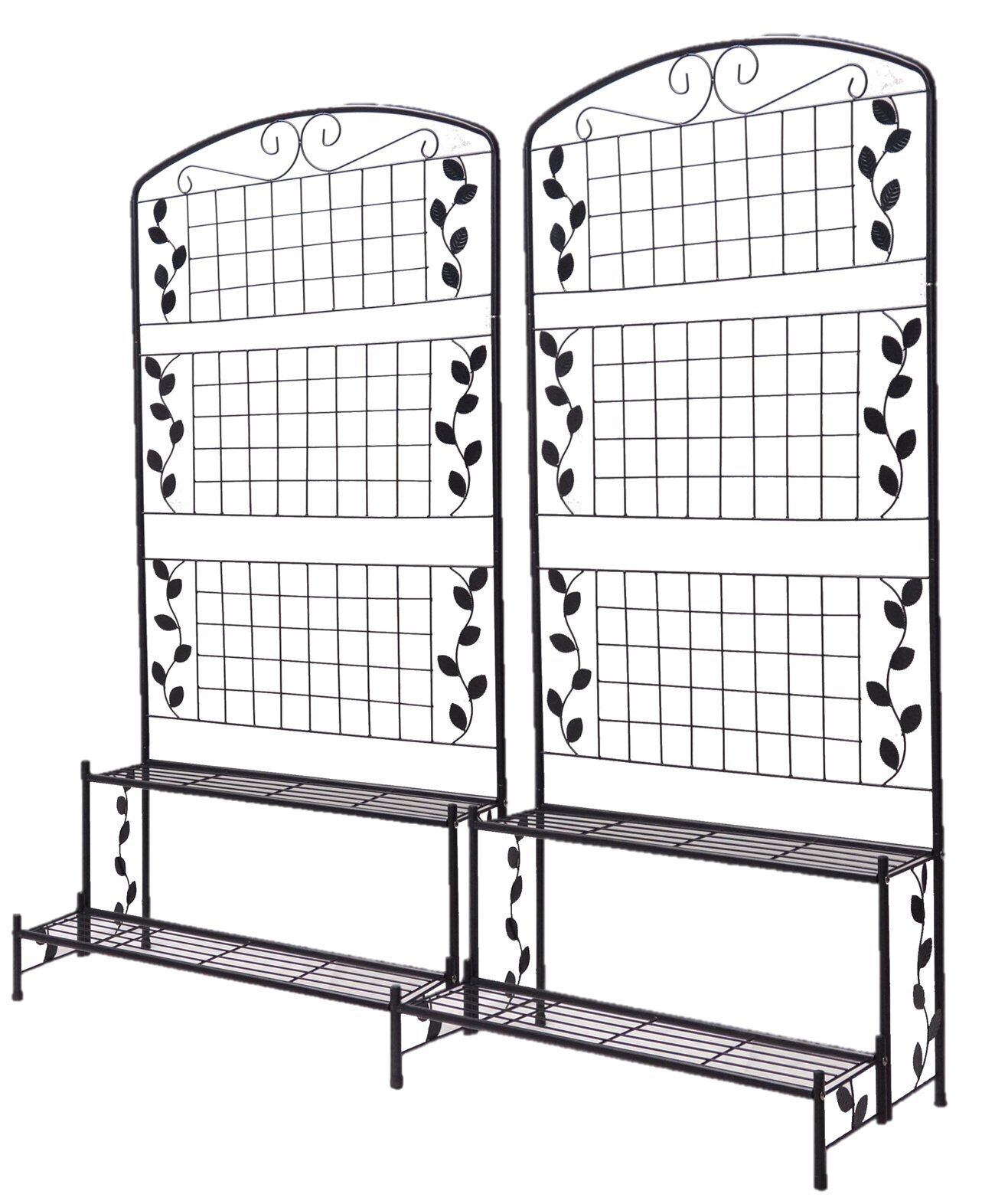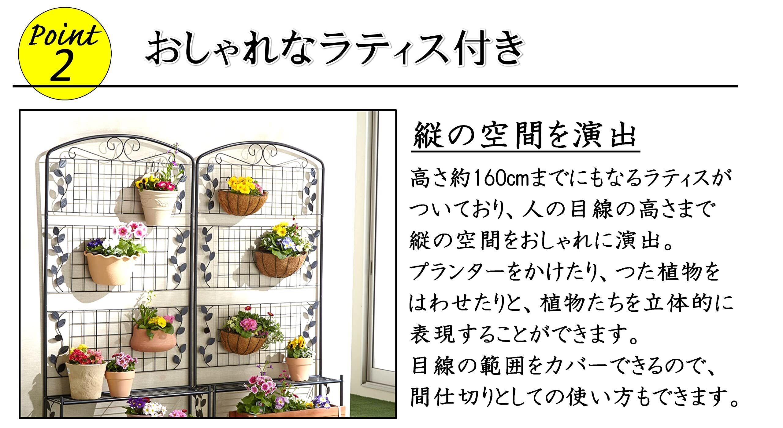 【在庫処分】リビングアウト(Living Out) フェンス付きフラワースタンド2段 ブラック 幅80×奥行40×高さ162cm 2台組 重量: 5.3kg プランター おしゃれ ガーデニング インテリア プランターの整理整頓 縦の空間演出 | ニコニコSHOP