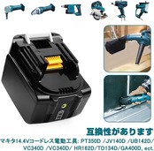 商品仕様: マキタ14.4vバッテリー 互換品 型番:BL1430B 電圧:14.4V 容量:3000mAh(3.0Ah) 種類:リチウムイオン電池 認証:PSEマーク取得済 電動工具用互換バッテリー