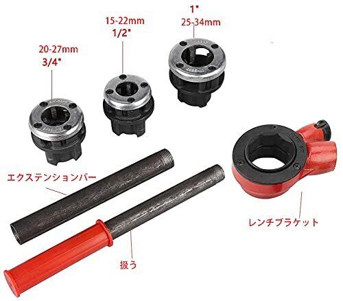 LW ねじ切り機 手動 パイプねじ切り機 1/2 3/4 1 ねじ切り ねじ切り機械 パイプねじ切りキット 亜鉛メッキ管と鉄管のねじ切り作業に適用
