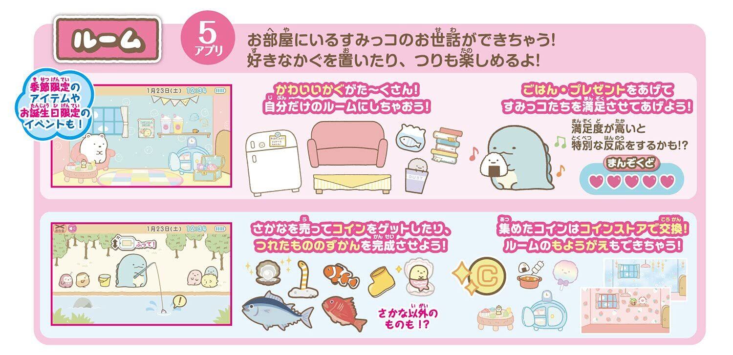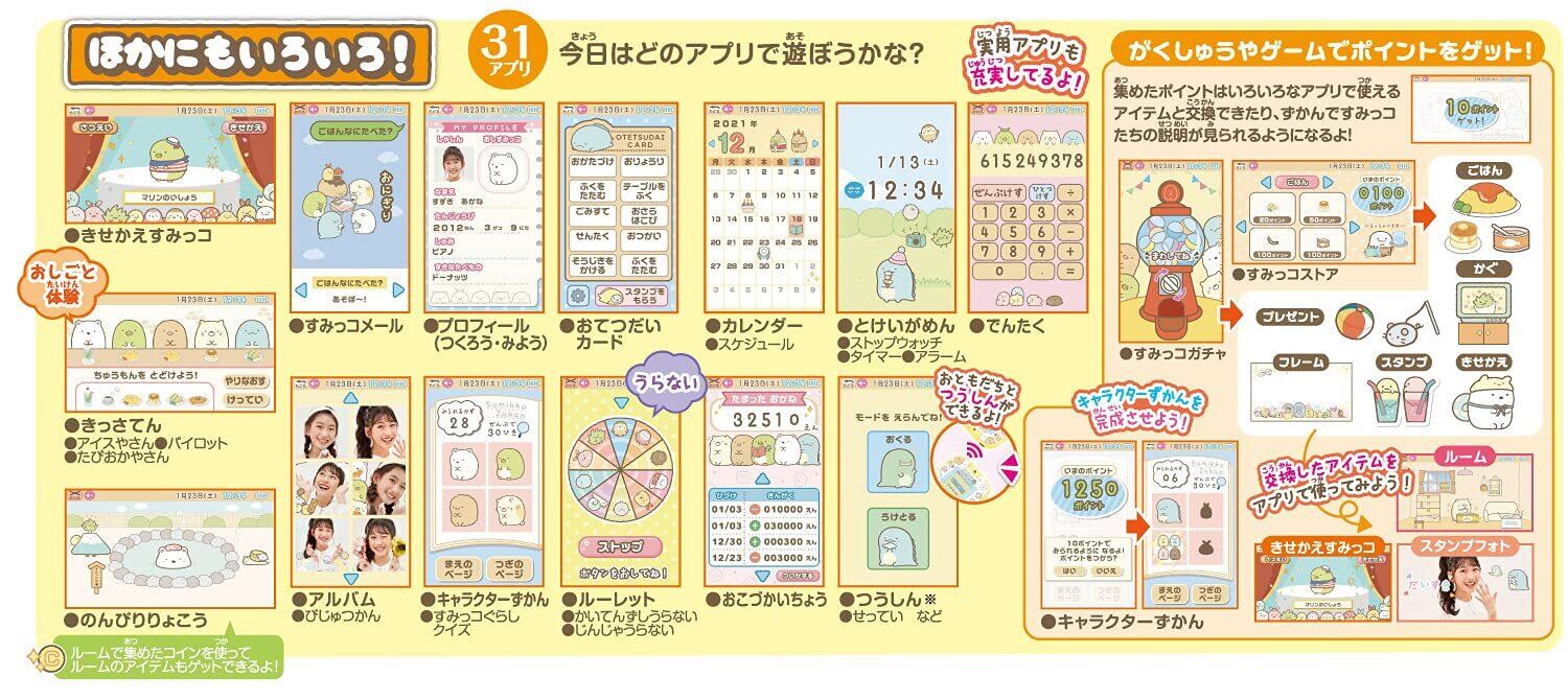 ●90アプリ、192メニューの充実した内容で、すみっコたちと遊びながら楽しくお勉強もできます。