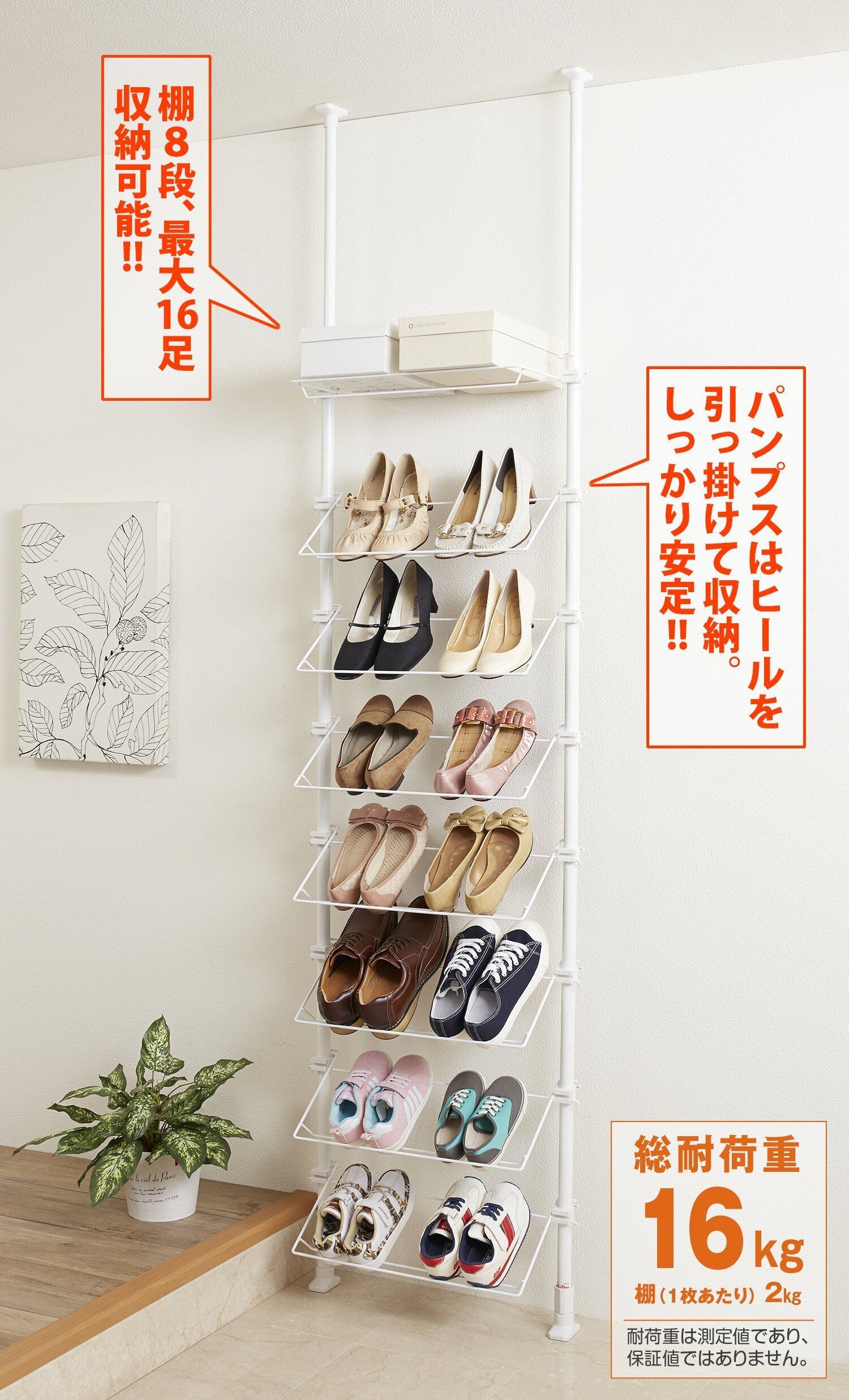 工具不要、つっぱるだけで設置できるシューズラック。