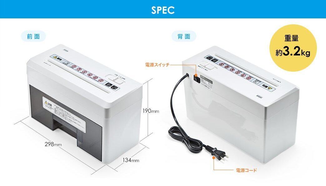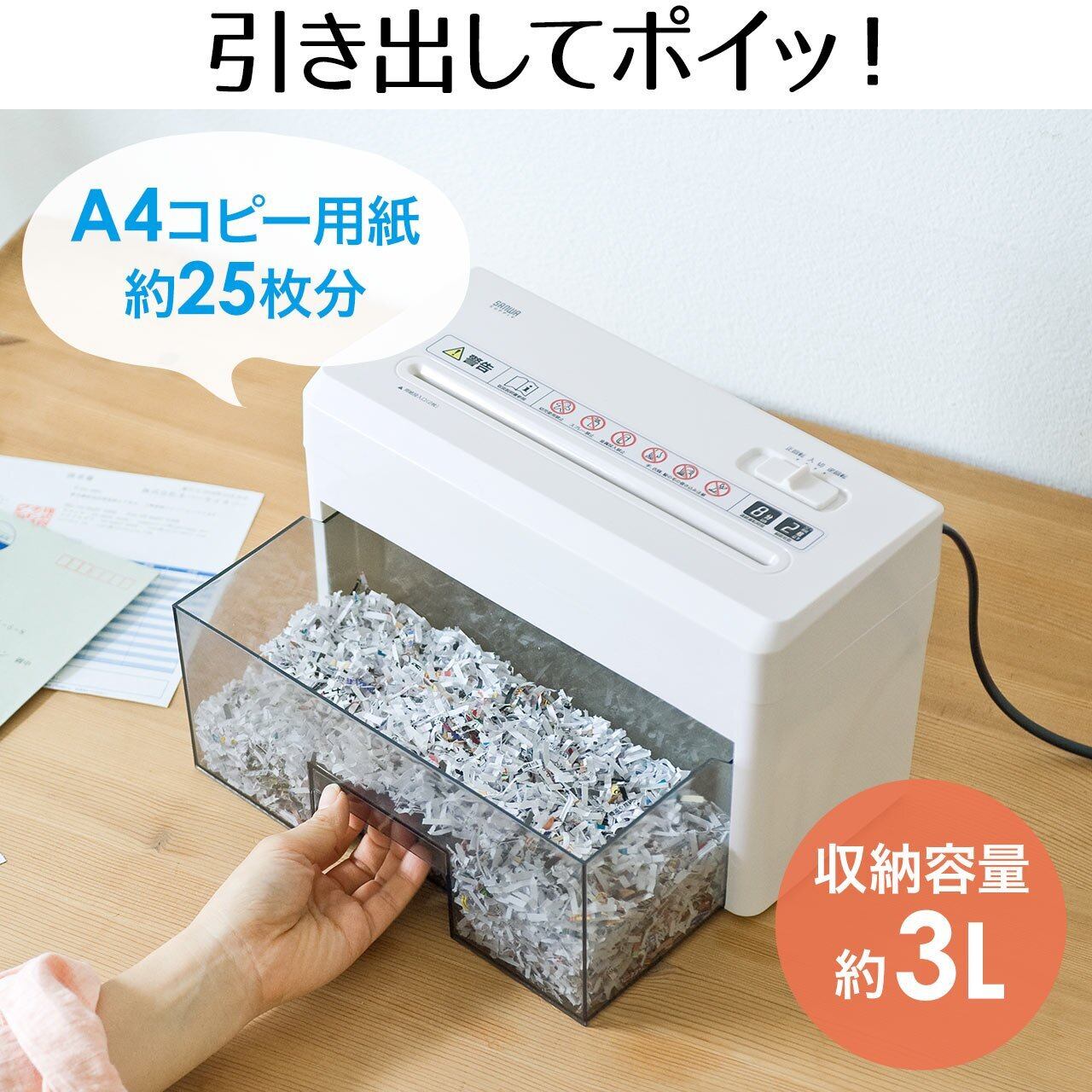 サンワダイレクト 小型 シュレッダー 家庭用 電動 マイクロクロスカット はがき細断可能 静音 A4 2枚細断 連続使用8分 400-PSD025