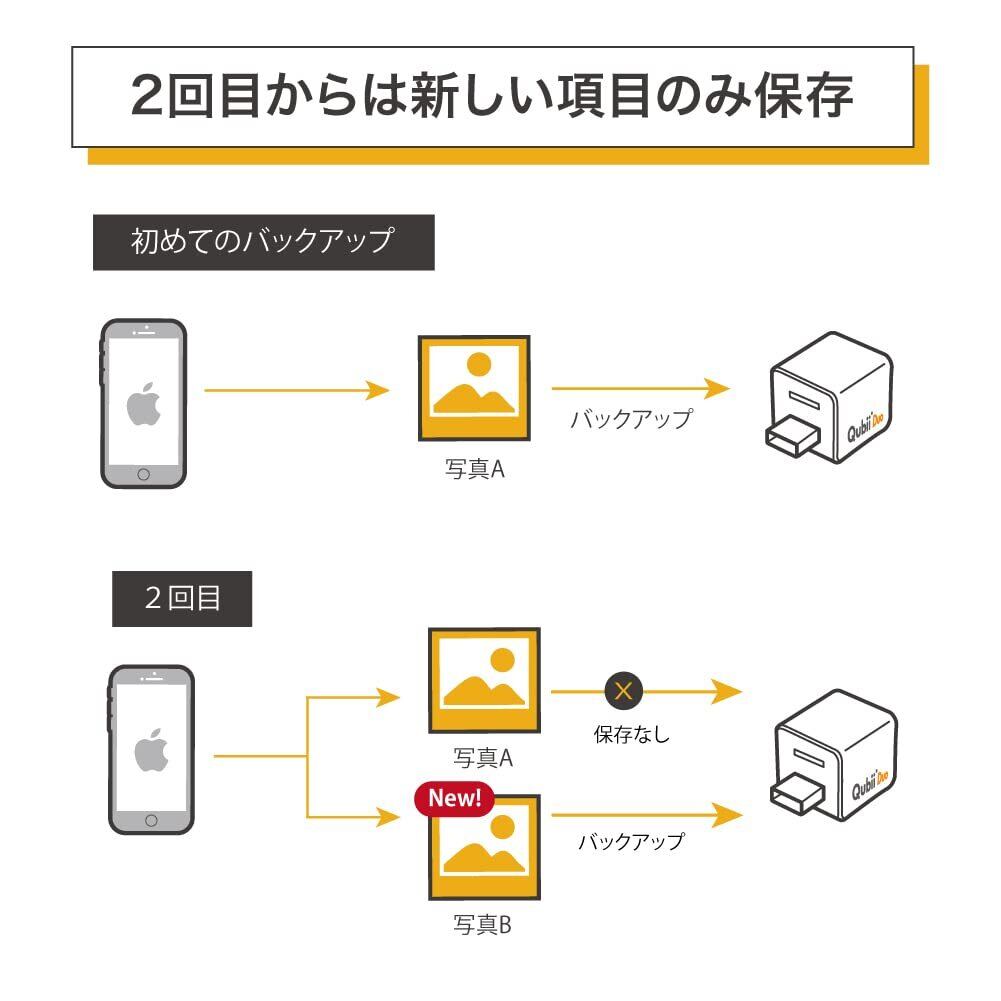 【Qubii Duoがあれば写真取り放題】寝る前にスマホ充電するだけでiPhoneの写真や動画を自動バックアップ!Qubiiがあれば、iPhoneの容量不足には困らず、写真を気兼ねなく取り放題!使いやすくて高速転送。簡単操作で手軽にiPhoneの写真をパソコンにデータ移行することも可能。