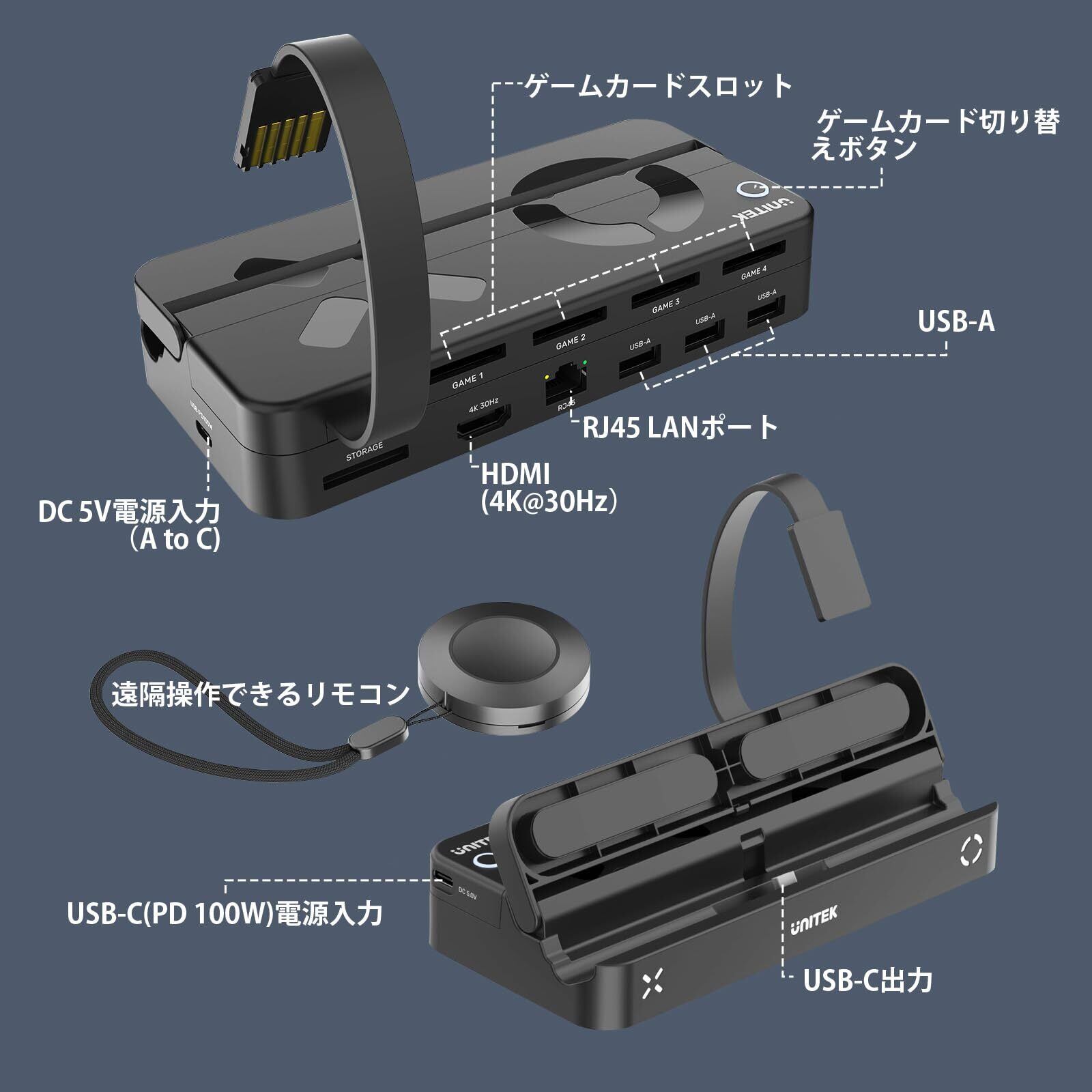 【在庫処分】Unitek 2024 リモコン付き 10-in-1 Switch カードリーダー切り替え器 switchドック 【Nintendo Switch&Switch OLED対応】 切り替え4 単体取扱可 充電しながらテレビに映せる 【LAN・HDMI変換・USB】 1000イーサネット 小型 ミニドック コンパクト 軽量 プレゼントに | ニコニコSHOP