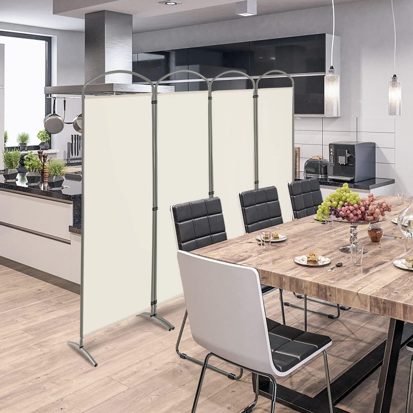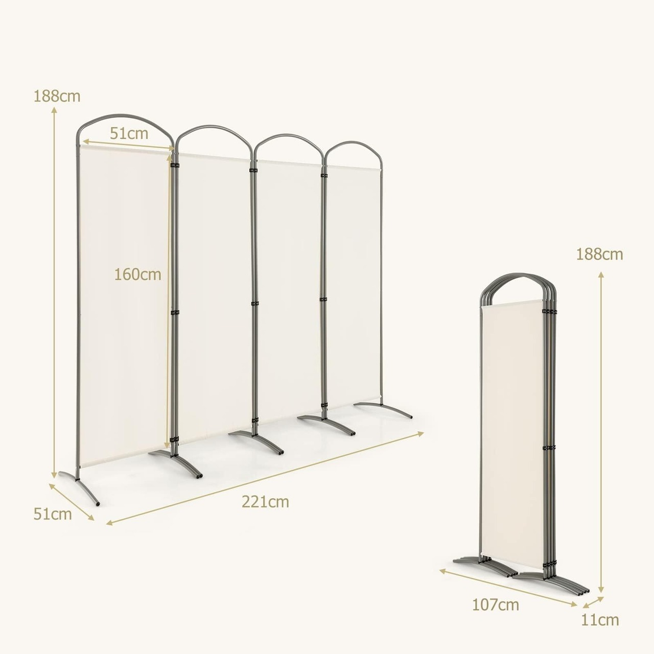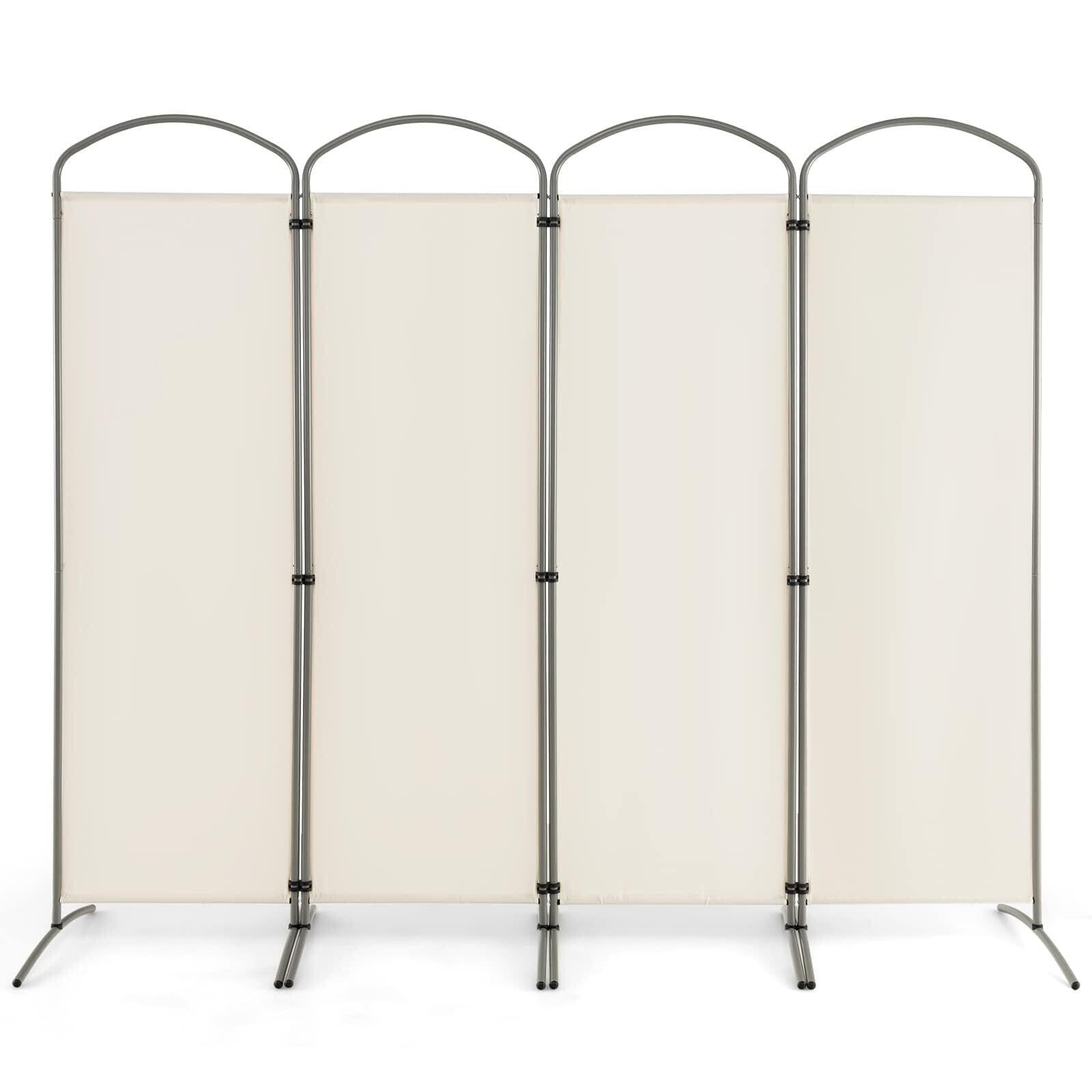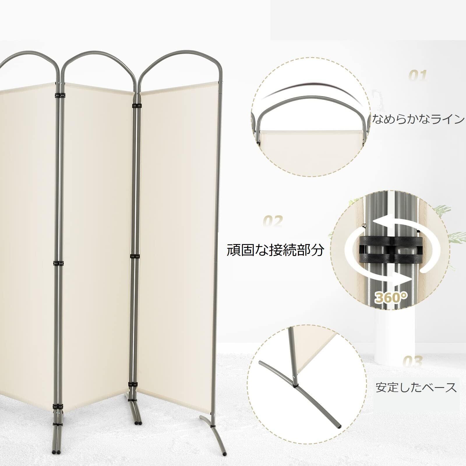 COSTWAY 間仕切り パーテーション 4連 幅221cm 高さ188cm 折りたたみ 布タイプ パーティション 衝立 目隠し 部屋仕切り スクリーン 屏風 キャスター無し オフィス クリニック レストラン ホテル ベージュ