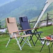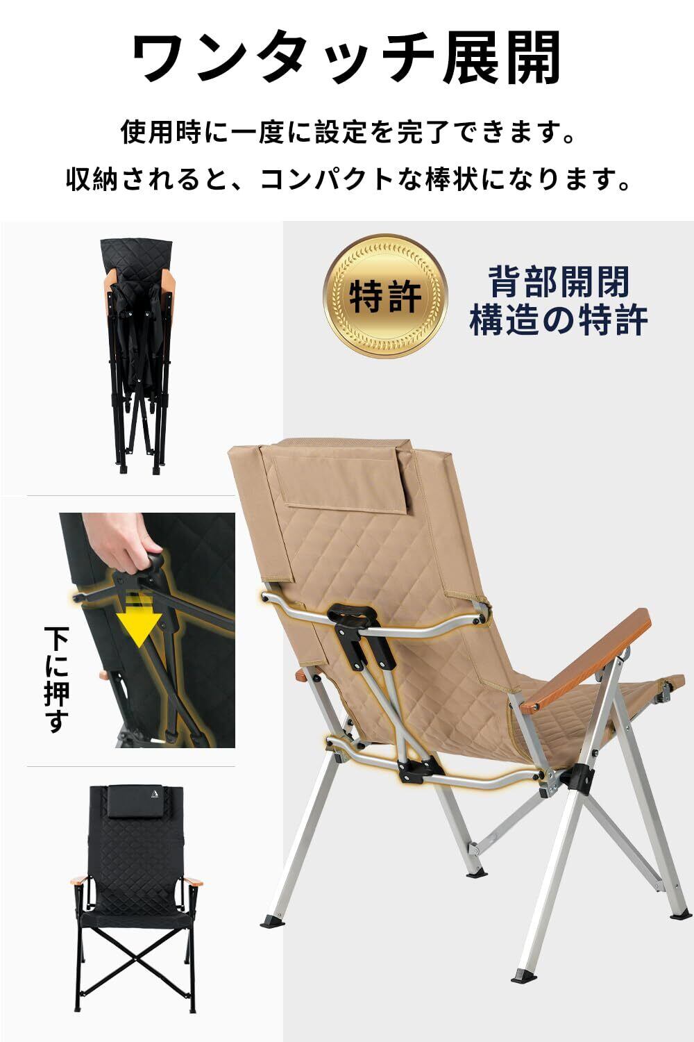 【特価商品】ARURUキャンプ用リクライニングチェア、ヘッドレスト付き4段階傾斜ハイバック椅子、コンパクトに折りたたみ可能なアウトドアチェア、そして便利な収納袋付き(カーキ)
