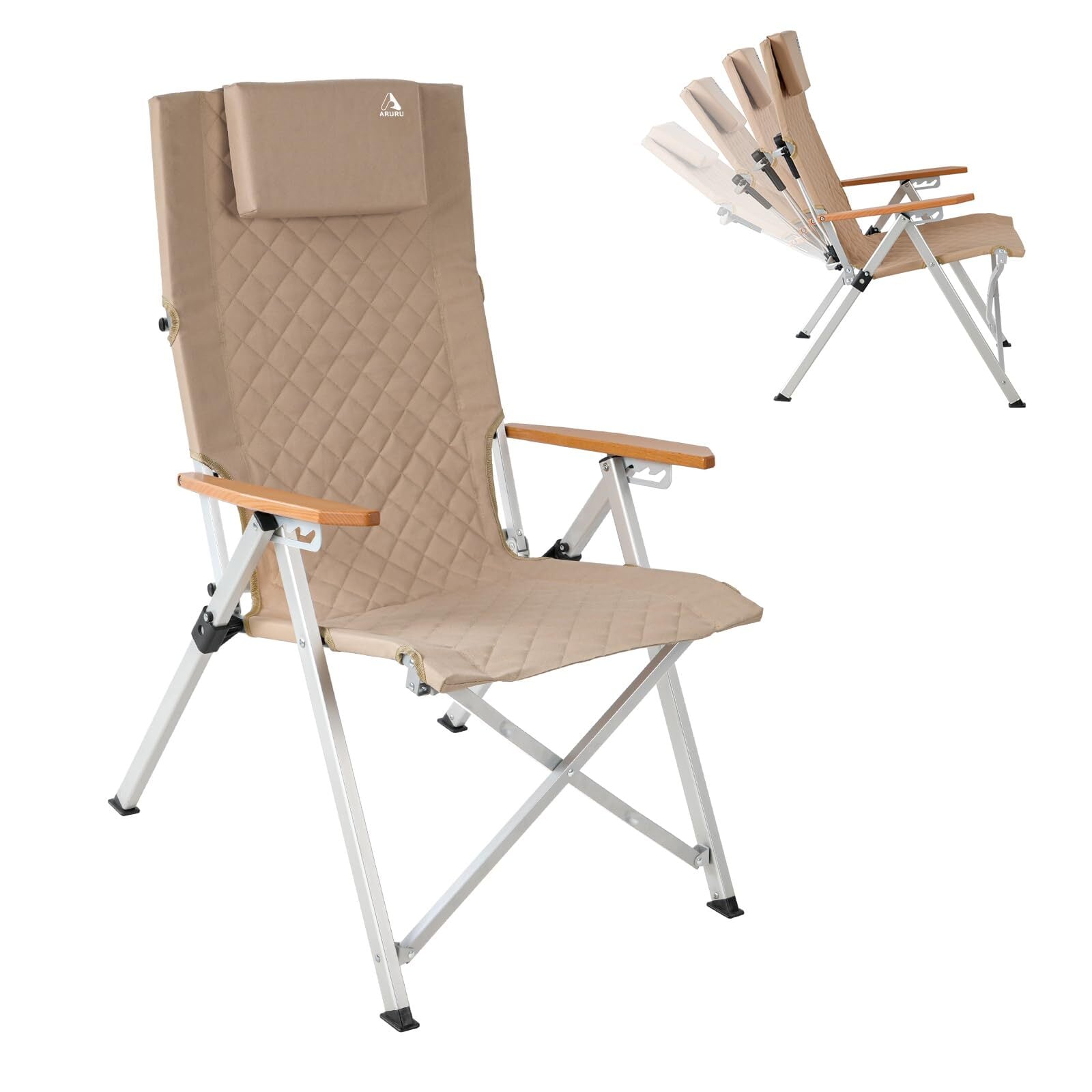 ARURUキャンプ用リクライニングチェア、ヘッドレスト付き4段階傾斜ハイバック椅子、コンパクトに折りたたみ可能なアウトドアチェア、そして便利な収納袋付き(カーキ)
