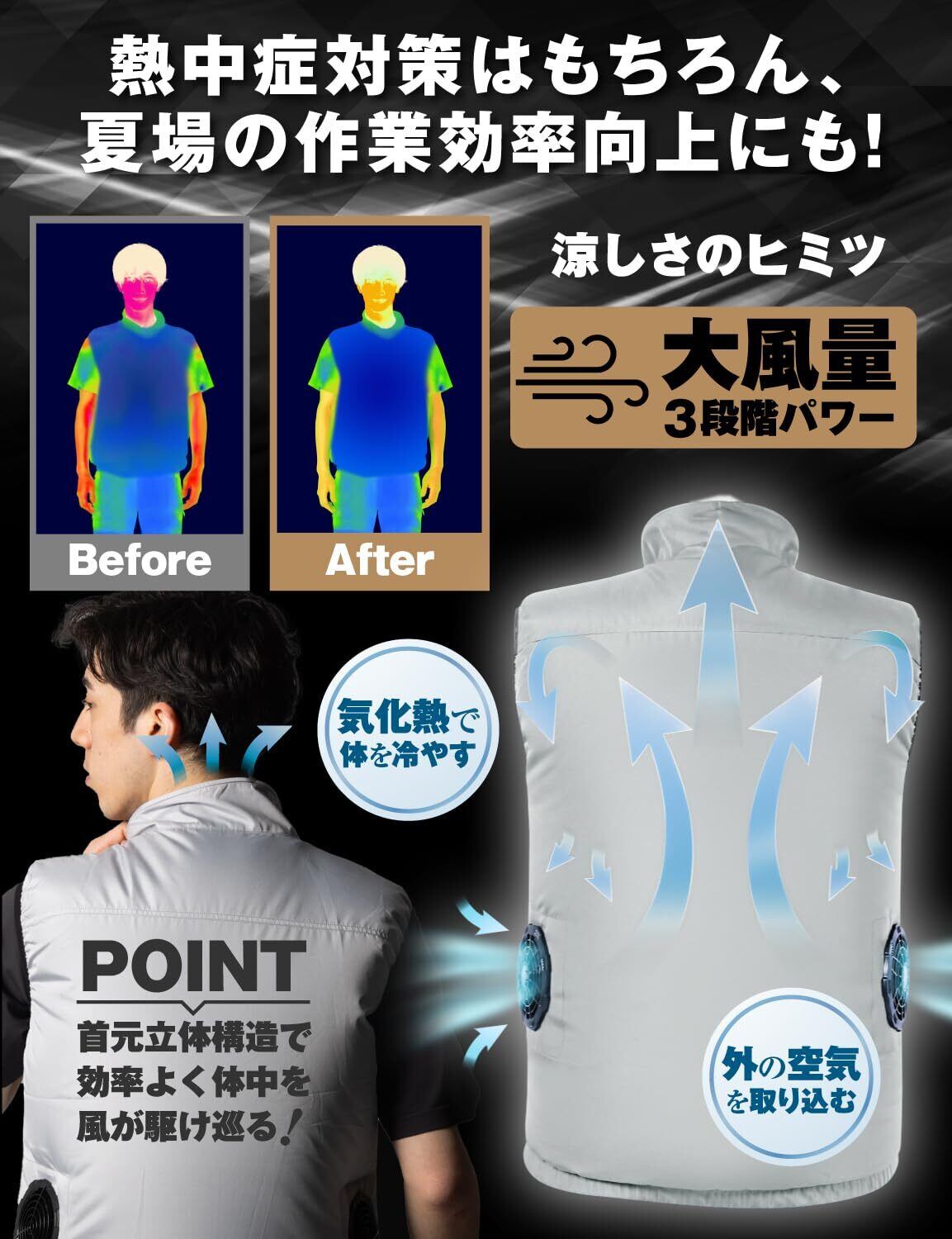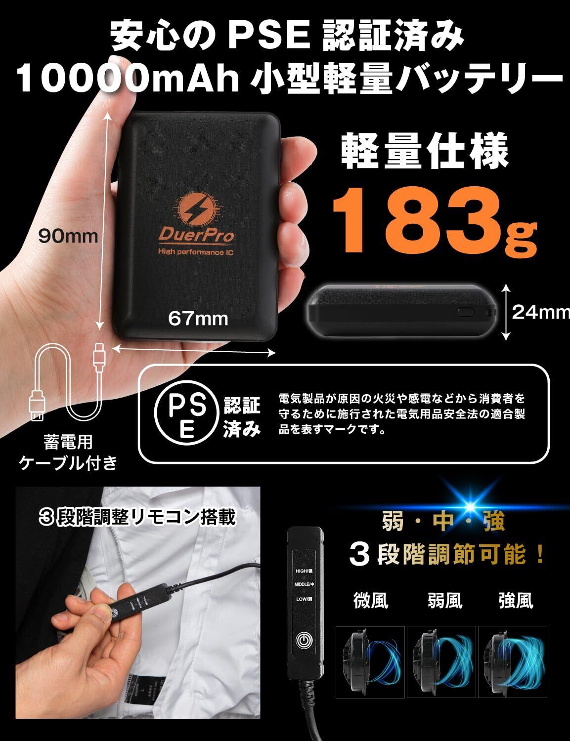 【空調ウェア ファン付きベスト で夏の作業効率向上!】個人様、法人様より毎年大好評の、空調ウェア ファン付きベスト フルセットが今年も登場!炎天下の中での作業、空調が使えない中での屋内などで大活躍!ベスト、静音ブラシレスファン、PSE承認10000mAhのバッテリーがセットになった、届いた日からすぐに使えるフルセットとなっております。誰でも簡単に取り付け、起動ができるスタンダードタイプになります。空調ウェア ファン付きベストは男女兼用なのでスタッフさん同士や家族内で使い回しができます!私たちは国内メーカーになります。不備や不明点がございましたら、お気軽にカートボックス下の「Duerfusa」から「質問する」よりご連絡ください。