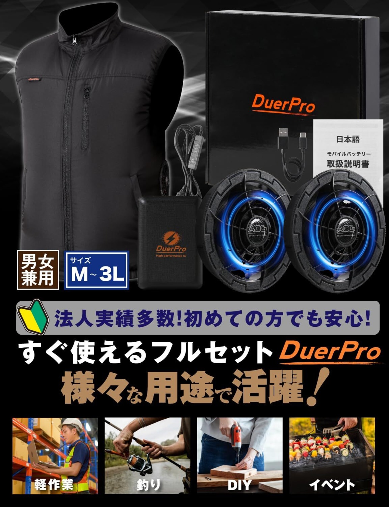 【人気商品】[Duerfusa] 空調ウェア 空調作業服 ファン付きベスト 【夏の作業効率向上】 すぐ使えるフルセット PSE承認バッテリー ファンバッテリーセット 長袖 ベスト 普段使いからお仕事にも 男女兼用 大きいサイズ 中小企業導入実績