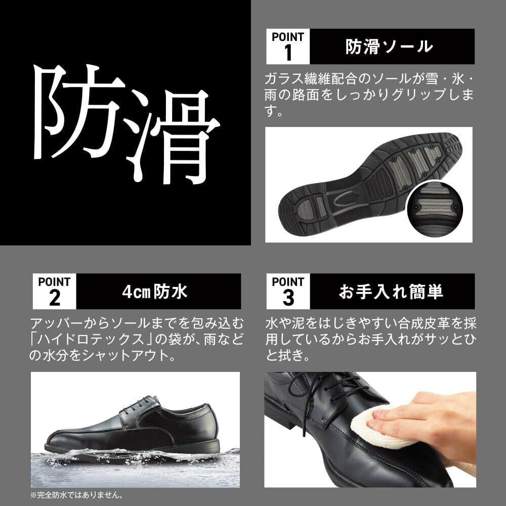 [ハイドロテック] 防水 防滑 内羽根 ストレートチップ ビジネスシューズ ブラックコレクション HD1420 メンズ