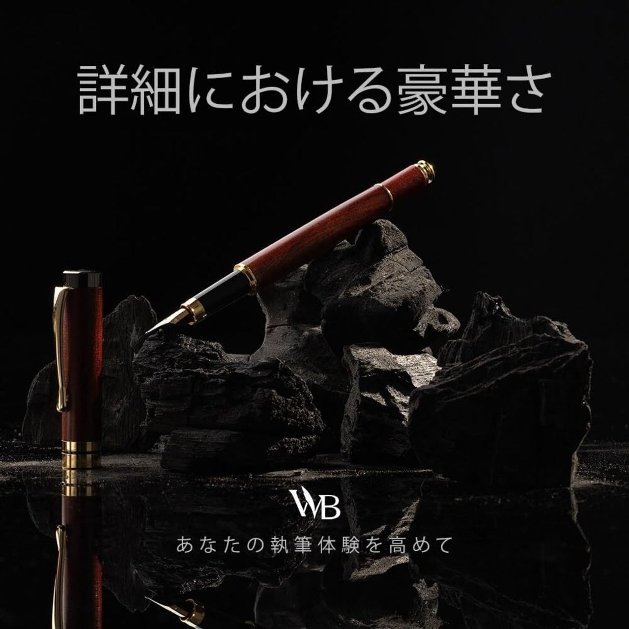 【特価セール】ワーズワース&ブラック最高級のプレミアム木製万年筆 - クレスト(ローズウッド)| 6本の万年筆インクカートリッジ(ブラック&ブルー) | 24Kゴールド仕上げ | 18Kゴールドメッキのミディアムニブ | 男性と女性の両方に適しています | プロフェッショナルなエグゼクティブ職場のギフトボックスペンセット | ニコニコSHOP