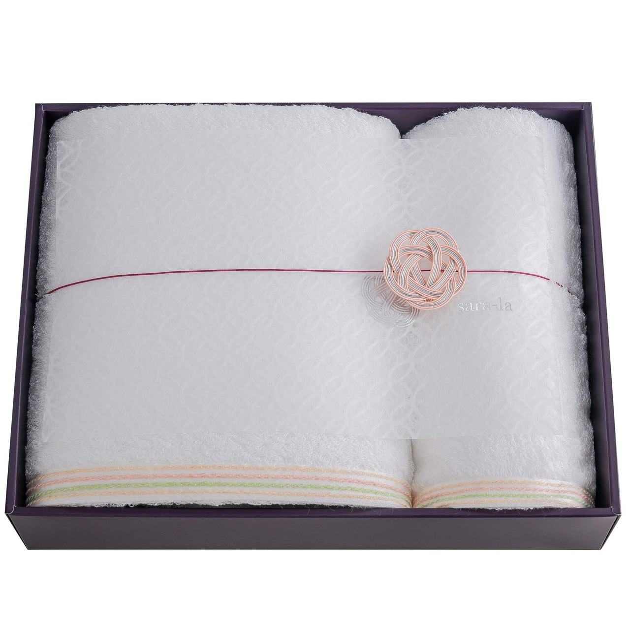 今治タオル タオルセット バスタオル フェイスタオル ギフト 綿100 日本製 sara-la (さらら) 「縁-en-」 2枚セット ホワイト 内祝い