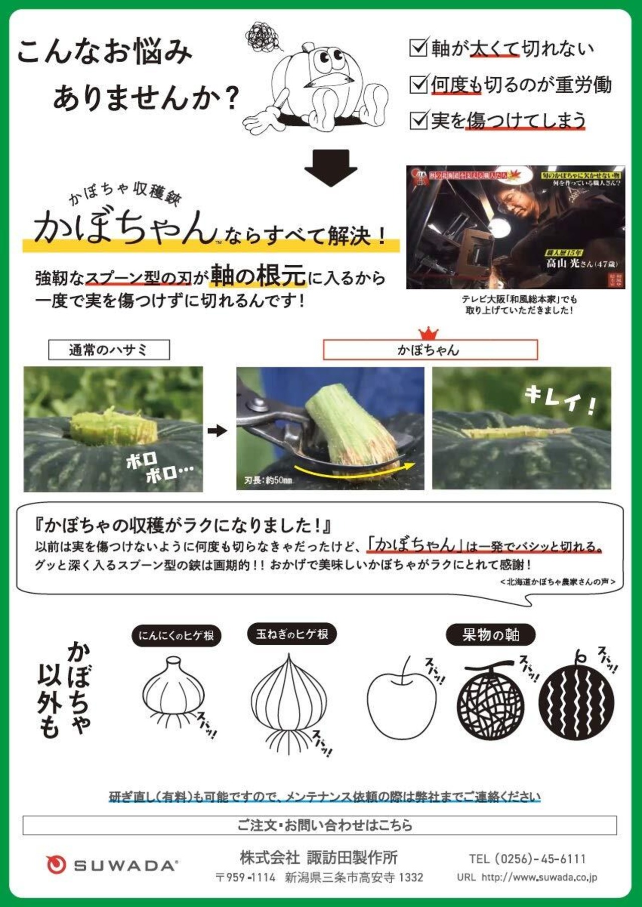 かぼちゃ収穫鋏「かぼちゃん」硬い軸も楽々切れる! にんにく、玉ねぎのひげ根切りにも便利 SUWADA