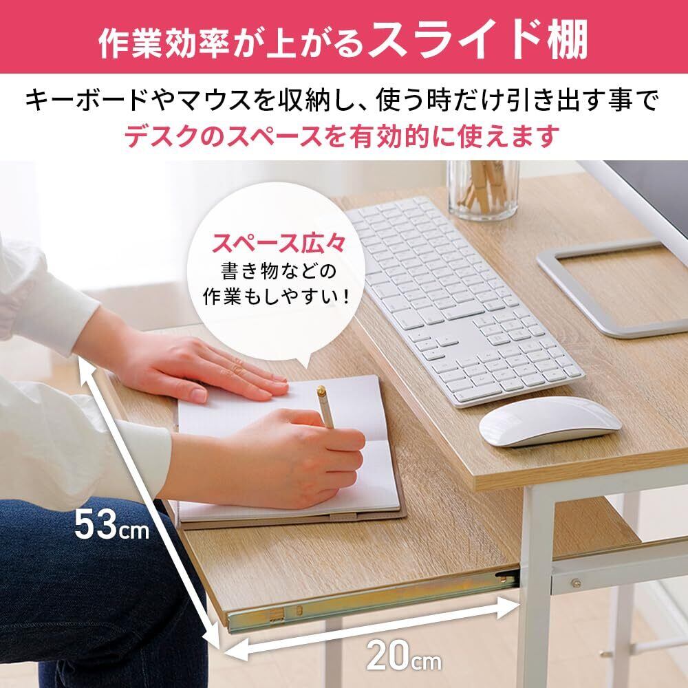上部にはプリンタなどを置ける棚付き。狭いスペースでもすっきり収まります。