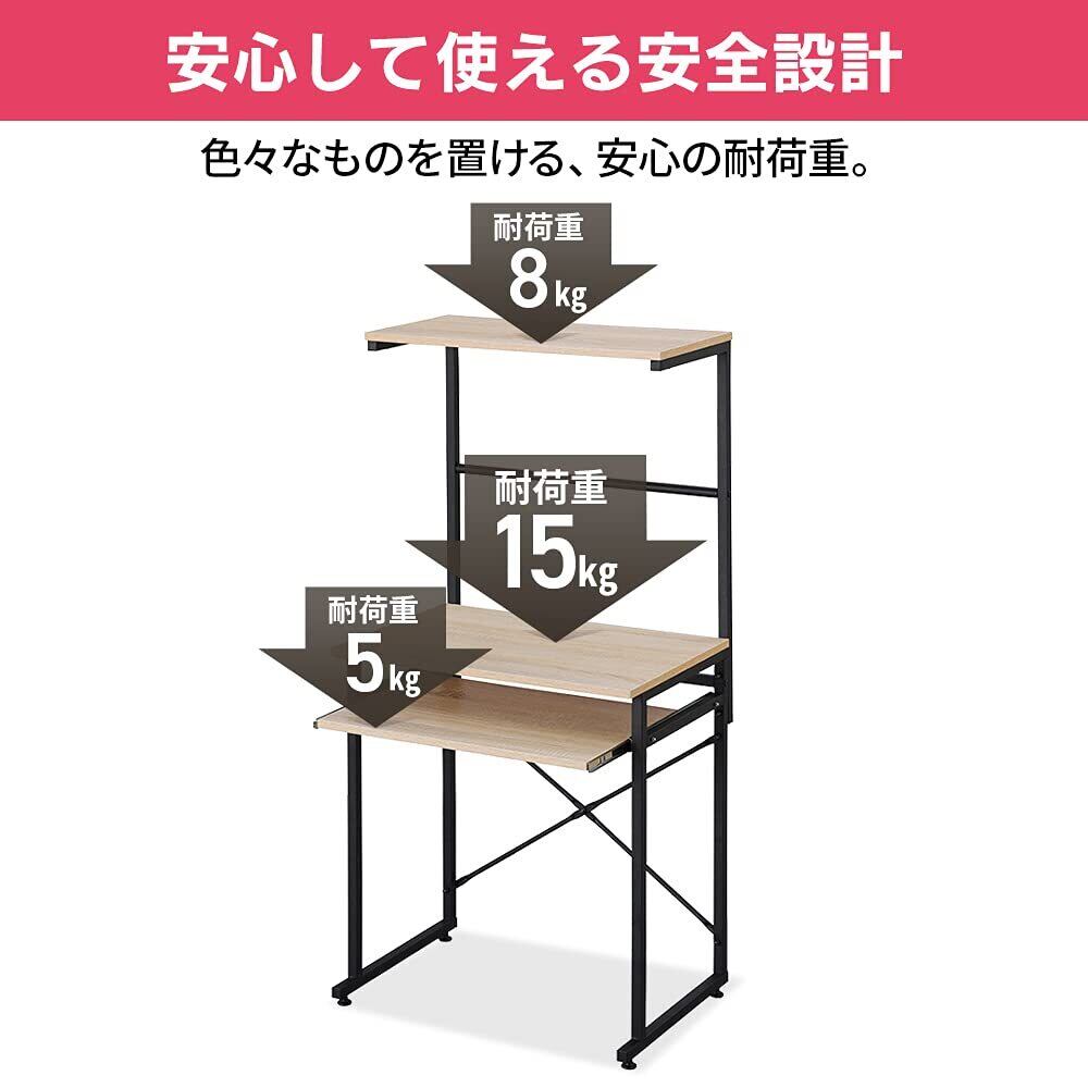 耐荷重:天板:約15kg、上部棚板:8kg、スライド棚板:約5kg