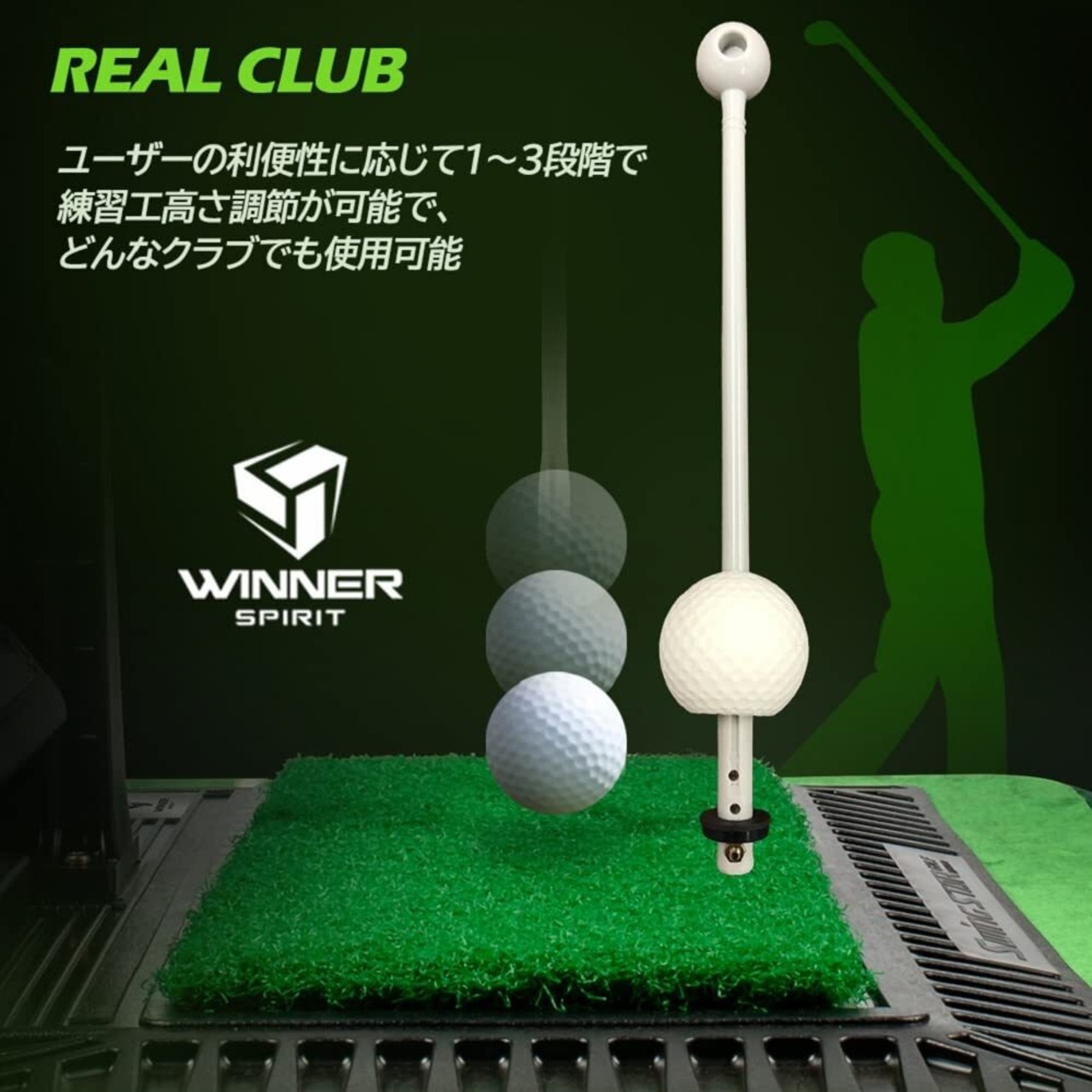 【在庫セール】WINNER SPIRIT ウィナースピリット リアルスイング300 ゴルフスイング&ヒッティングトレーナー 正しいインパクト スイング後の軌道チェック 練習マット スイングトレーニング補助具 高さ調節可能 | ニコニコSHOP