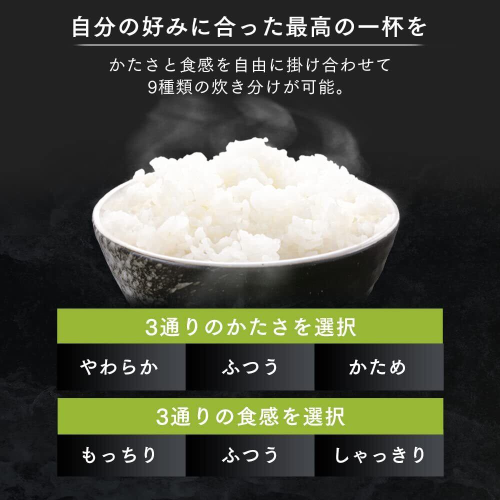 かたさと食感の9通りの組み合わせで、自分好みのご飯を炊き上げる。