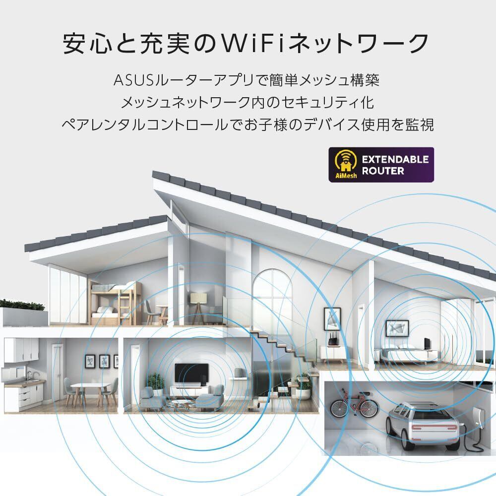 【Amazon.co.jp限定】ASUS WiFi RT-AX59U(A)/E 無線 ルーター WiFi6 3603+574Mbps v6プラス/ OCNバーチャルコネクト対応デュアルバンド 縦置き/壁掛け両対応 ネットワークセキュリティ「AiProtection」&「ペアレンタルコントロール」機能、家中をカバーメッシュWi-Fiシステム機能「AiMesh」 3階建4LDK / 3年保証