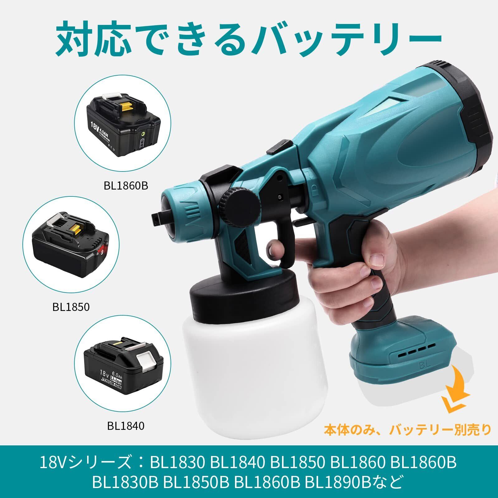 【マキタの18Vバッテリー対応可能】マキタの18Vバッテリー対応可能マキタ18Vバッテリーのインターフェースは同じなので、 マキタの18Vバッテリーbi1830bl1840bl1850bl1860bl1430bbi1460bbl1860bbl1830bbl1850bbl1860bbl1890bなどとの交換性があって、十分に作業できます。