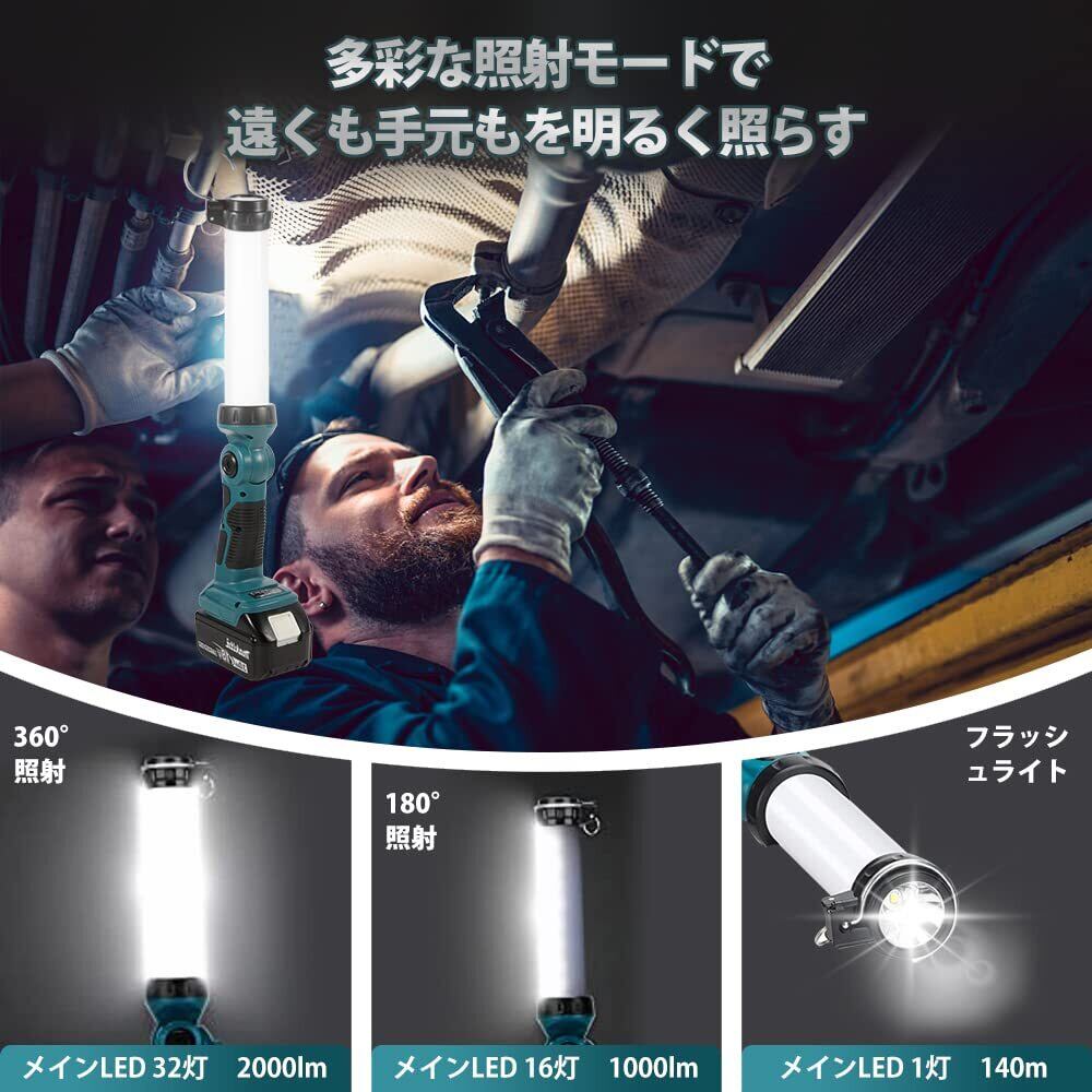 Orginer 充電式LEDワークライト18v ライト 照明 投光器 作業灯 26W 2000lm 360°照射 折り畳み収納可能なメタルフック マキタ14.4/18Vバッテリ対応緊急用照明 停電用 自動車整備 釣り 夜間作業 夜釣り アウトドア キャンプ用 バッテリ別売(本体のみ)