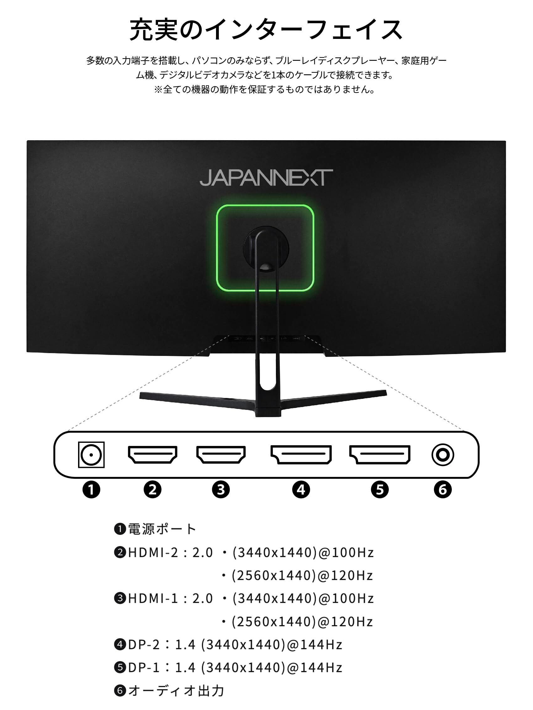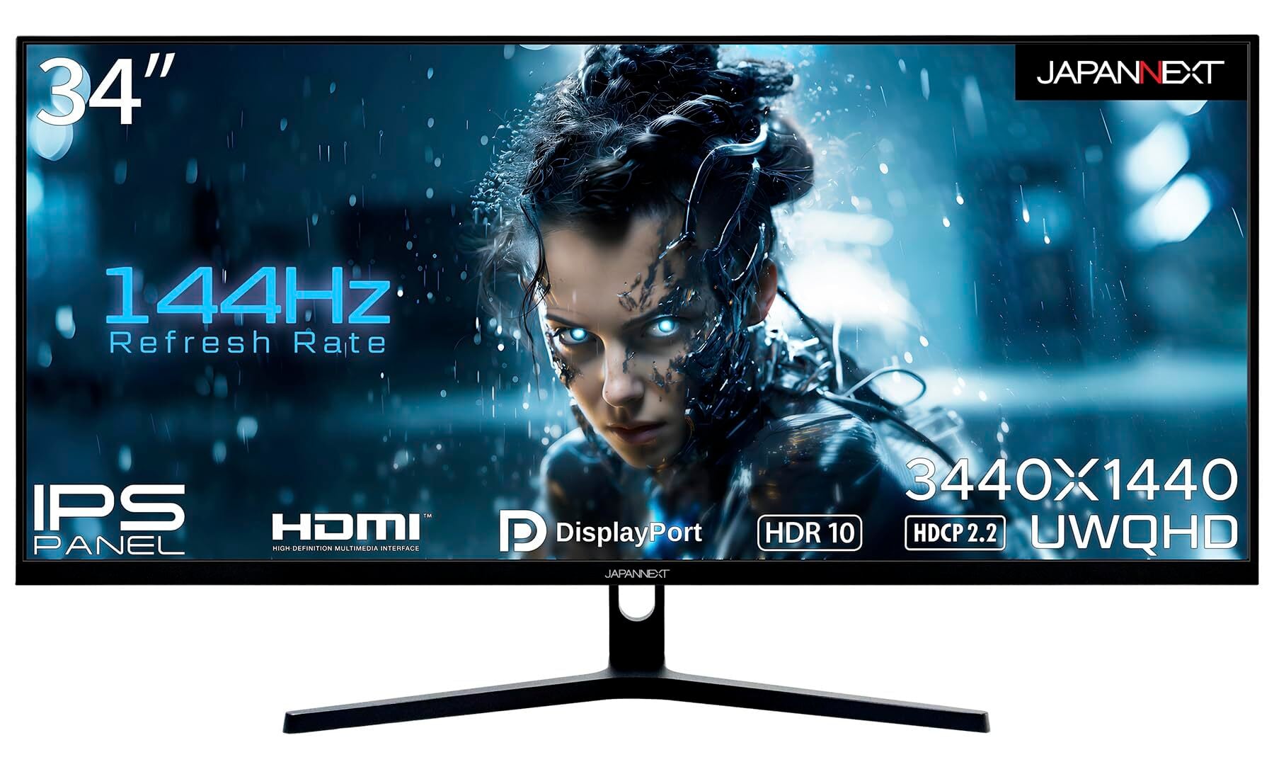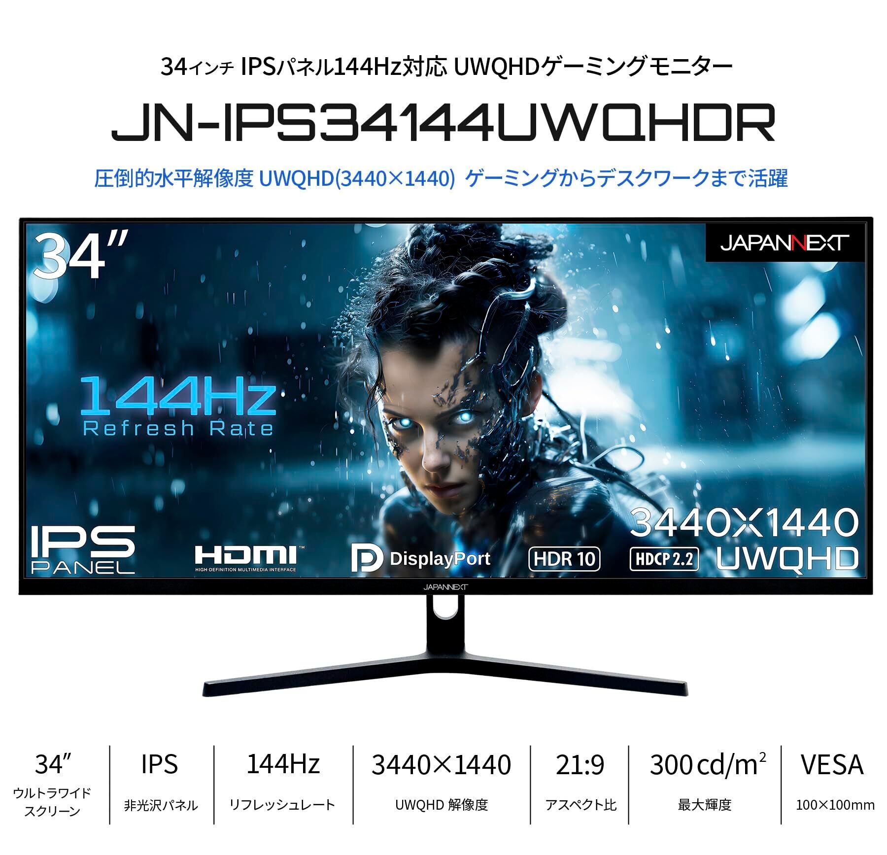 【数量限定】JAPANNEXT 34インチ ゲーミングモニター 144Hz 8ms UWQHD 3440x1440解像度 IPS パネル ディスプレイ (HDMI/DisplayPort/VESA対応/ブルーライトカット / 視野角178°) JN-IPS34144UWQHDR | ニコニコSHOP