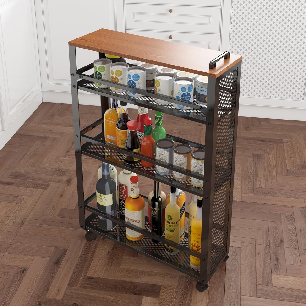 【移動に便利】キャスター付きで移動便利、360度自由に回転することもでき、よりフレキシブルな方向を持っています。2つはロック付きで、キッチンラックを特定な位置に固定できます。しかも、ハンドル付きだから使用時・収納時もスムーズに移動できます。