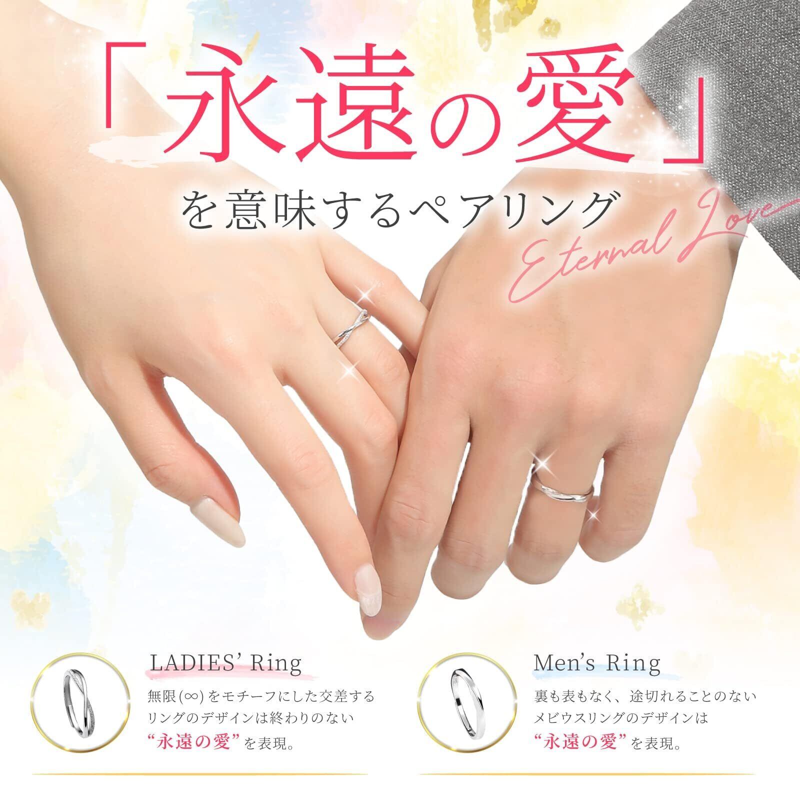 【 「永遠の愛」を意味するペアリング 】 それぞれのリングは永遠に続く愛をモチーフにしたデザイン。メンズリングは、裏も表もなく途切れることのないメビウスリング(メビウスの輪)をモチーフにして"永遠の愛"を表現。レディースリングは無限∞をモチーフにした交差するリングのデザインで、終わりのない"永遠の愛"を表現しています。ペアルックにぴったりのリングです。