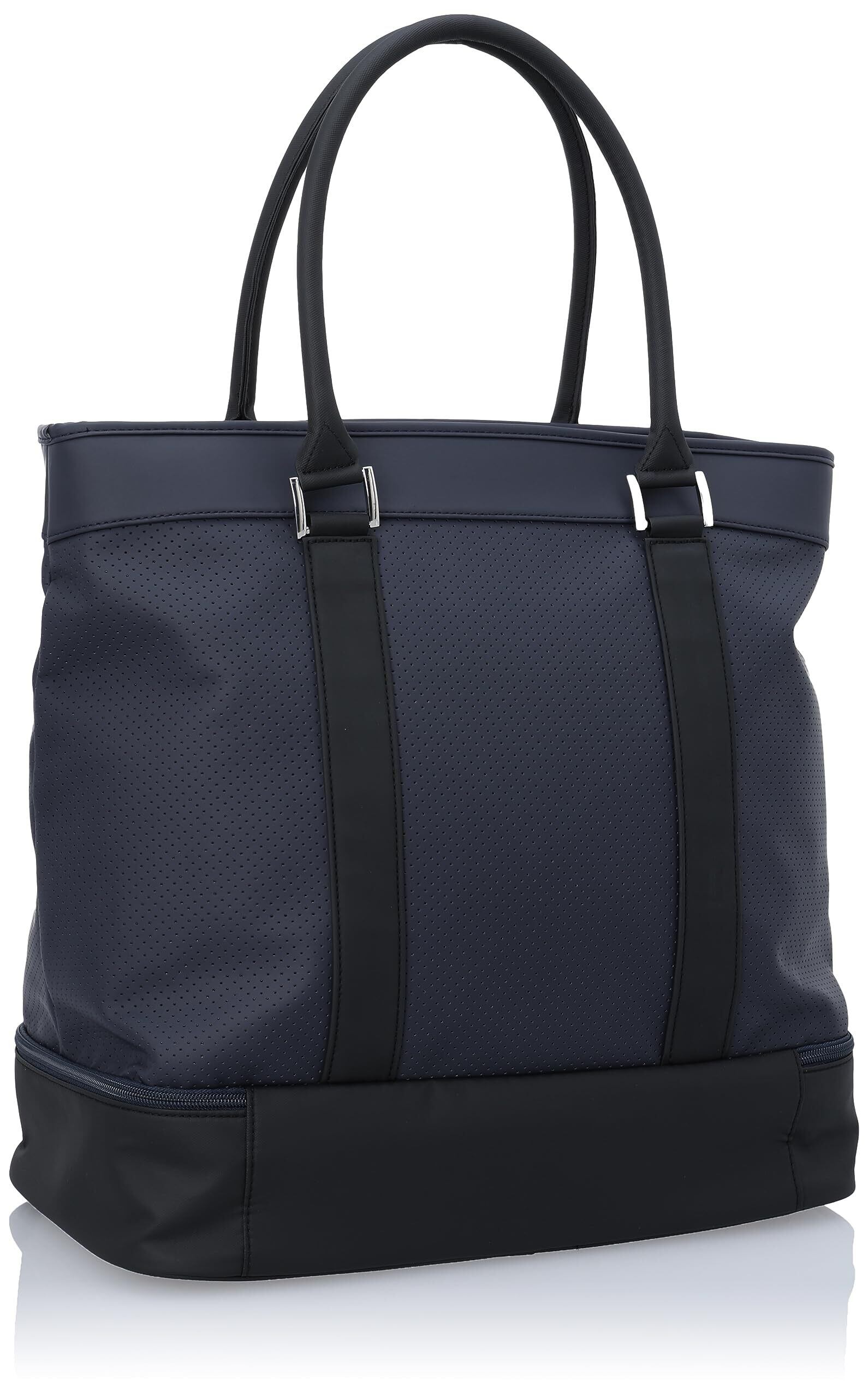 二層式のトート型ボストンバッグ。ルコックゴルフの定番商品で、多くの支持を受けているロングセラーアイテムです。下部ポケットはシューズを収納するために大きく開閉することができます。本体は、合成皮革素材にパンチング加工を施し、細かい穴が開いた表面感が特徴です。正面のワッペンには、エンボス加工を施し大人っぽいデザインに仕上げています。ショルダーも付属しています。
