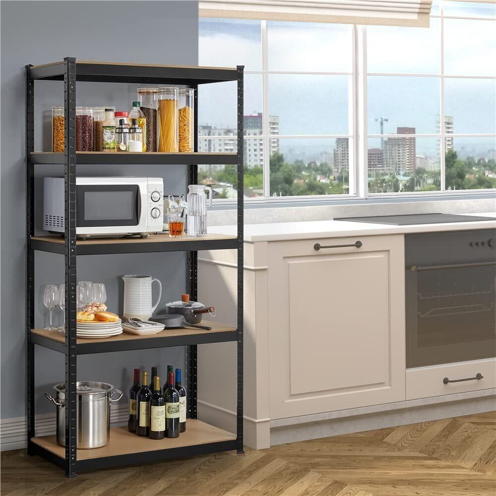 Yaheetech キッチンラック スチールラック本体 幅90 メタルラック 5段 収納棚 高さ調節可 ステンレスラック 収納ラック 防サビ加工 ネジなし 組立簡単 90×45×180cm 耐荷重1325kg キッチン 物置 倉庫 ガレージ
